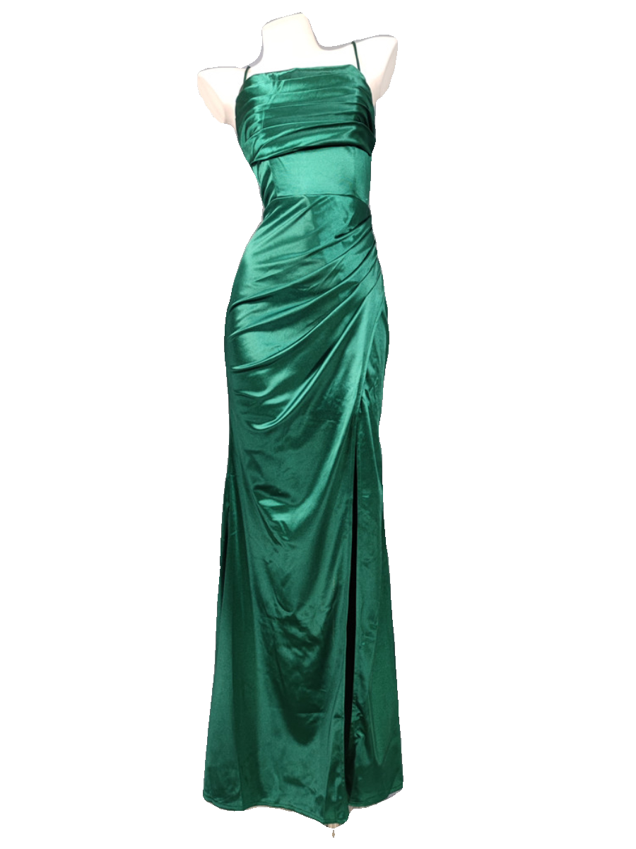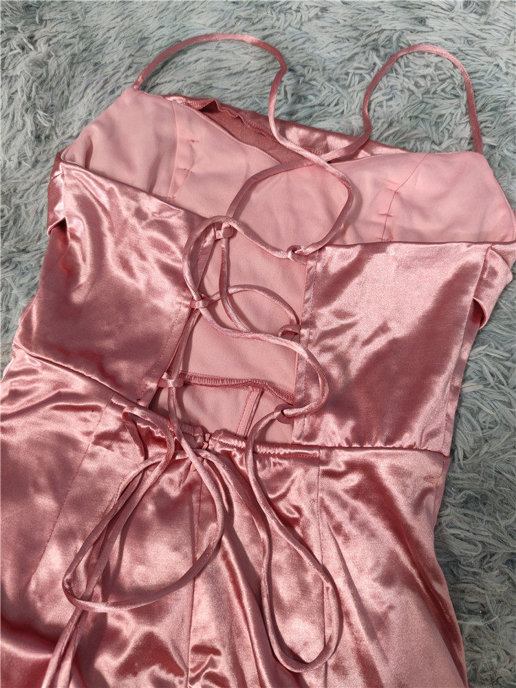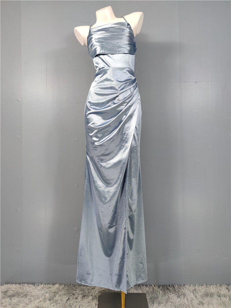 📚 外贸单多巴胺高质感光滑缎面光泽气场开叉大长腿露背礼服晚装长裙