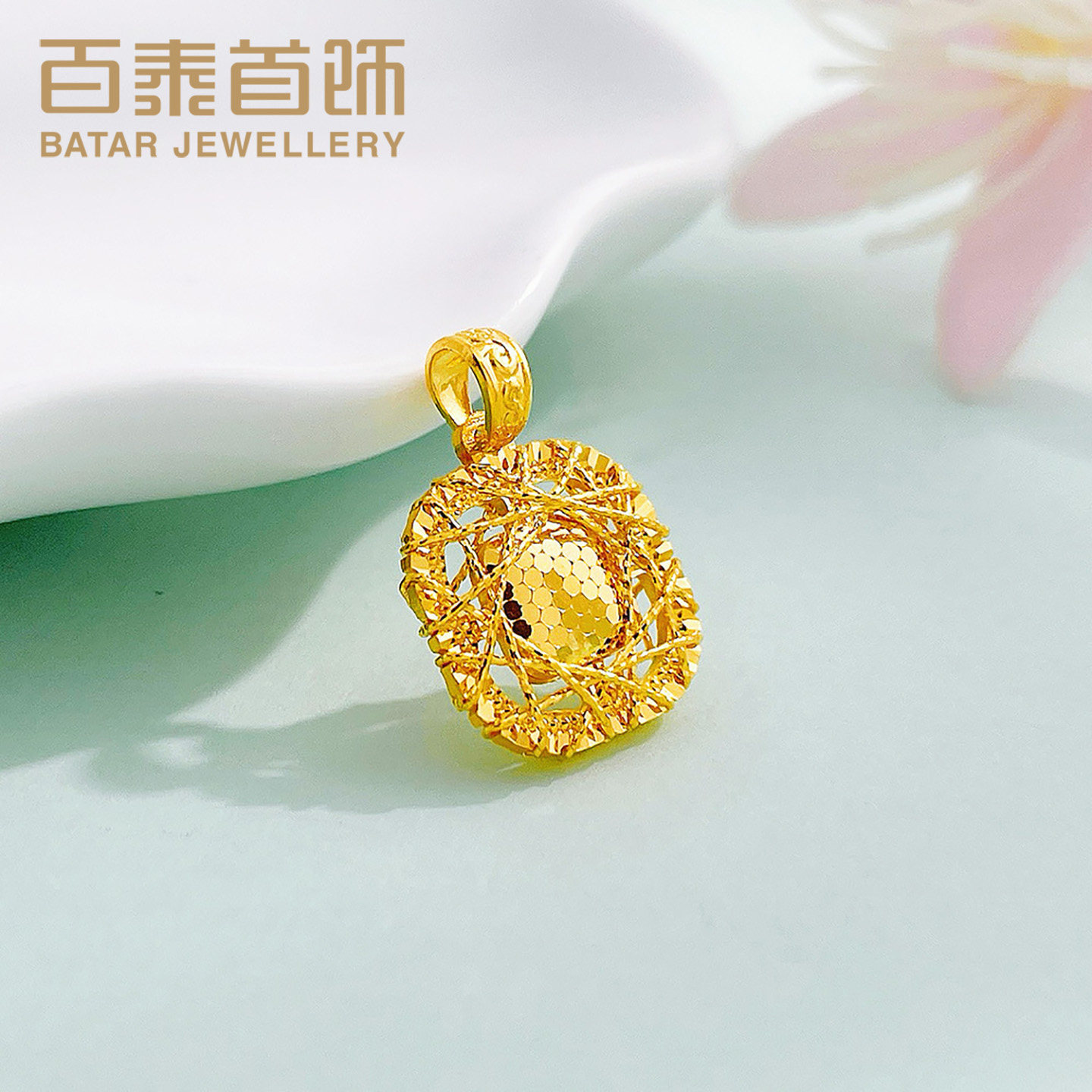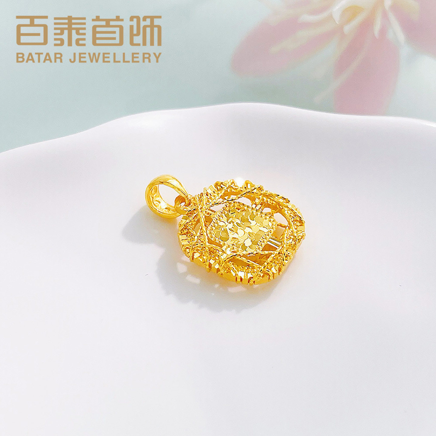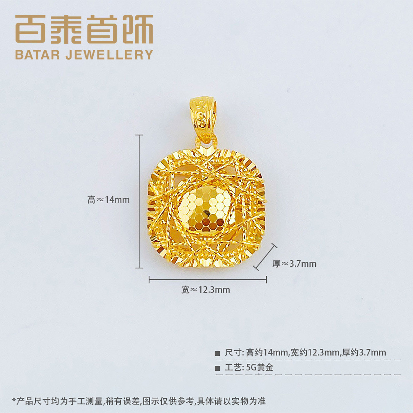📚 百泰碎碎冰小方糖黄金吊坠女足金999挂坠镂空绕线鱼鳞项坠生日礼