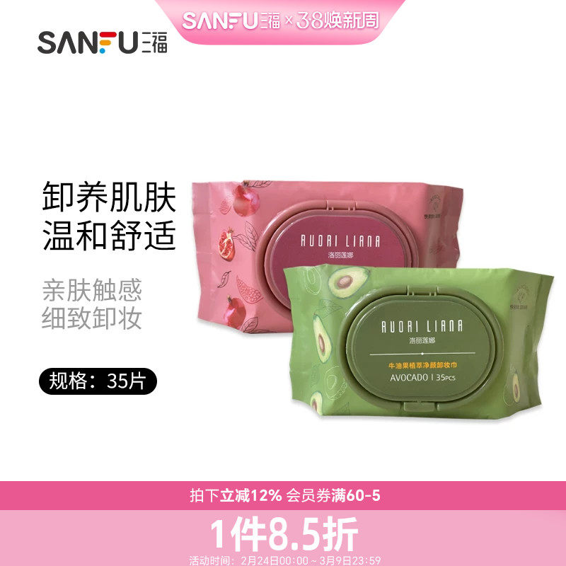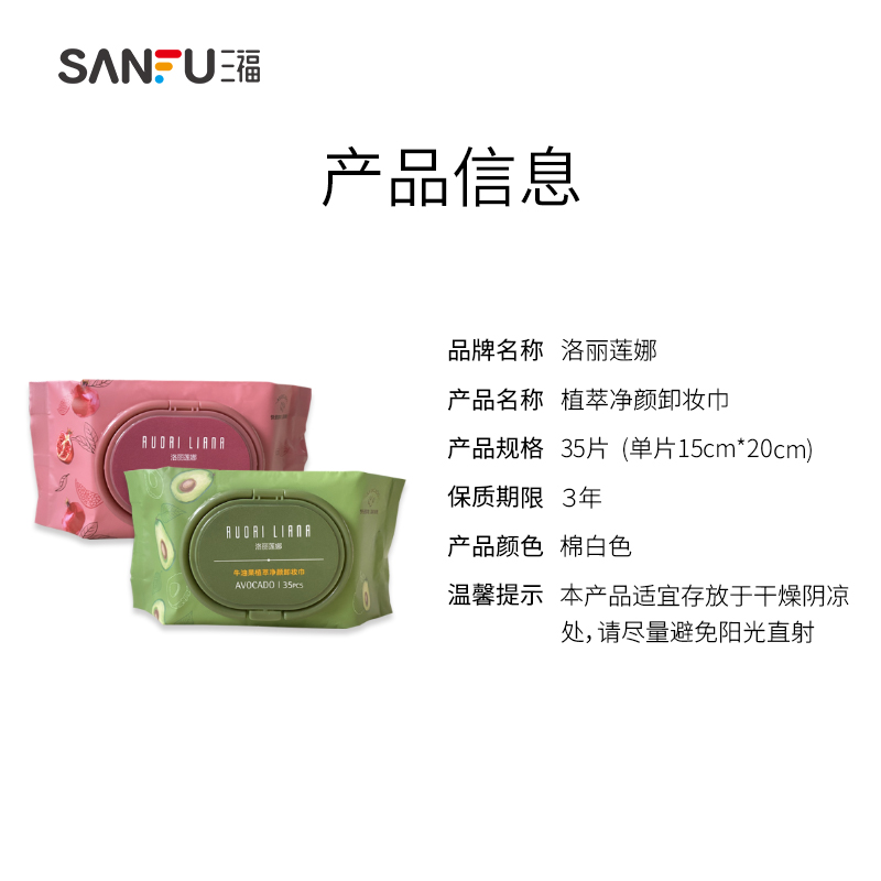 📚 量贩装三福洛丽莲娜净颜卸妆巾35片温和洁净便携卸妆湿巾432399