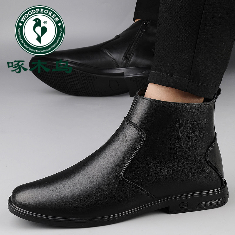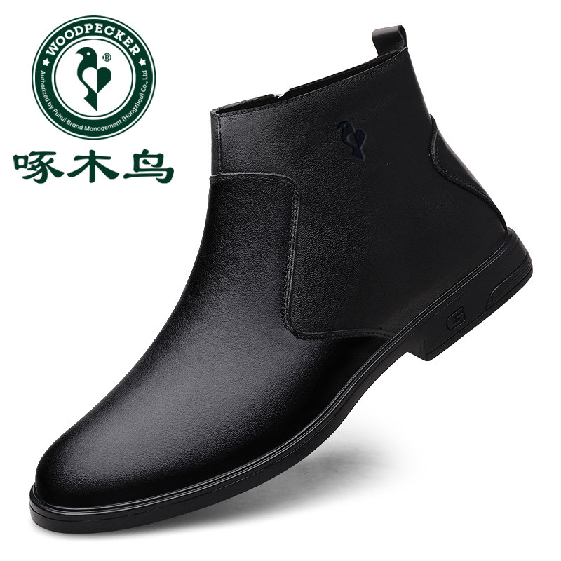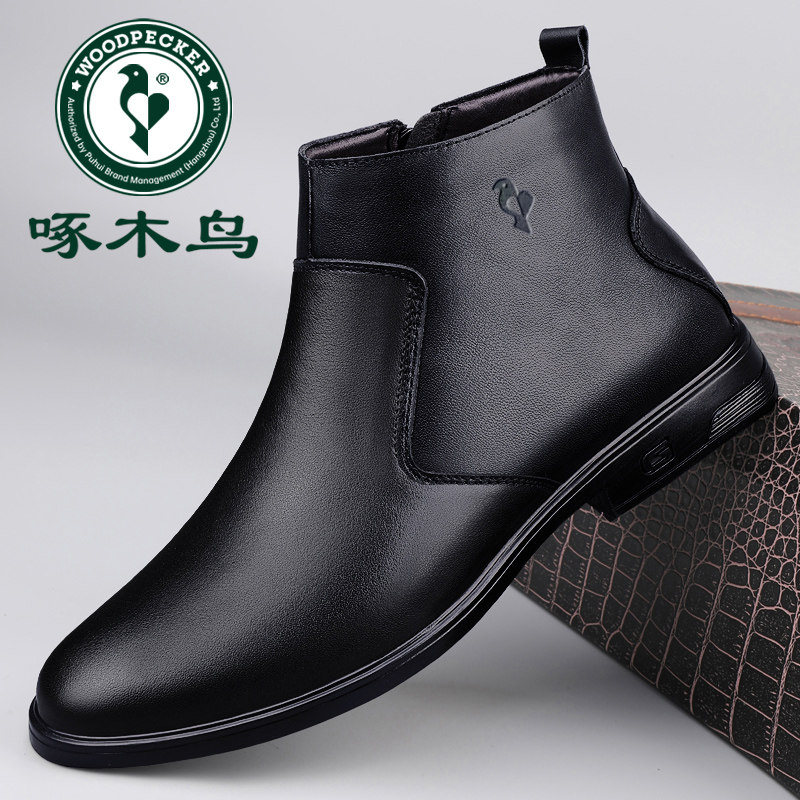 📚 啄木鸟男鞋冬季加绒保暖棉鞋高帮雪地靴男款东北旅游大棉皮鞋防滑