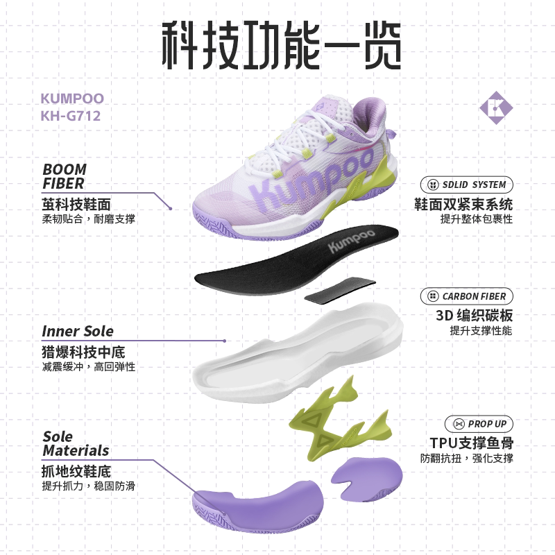📚 KUMPOO薰风羽毛球鞋G712蝶影透气减震专业比赛运动训练鞋防滑耐磨