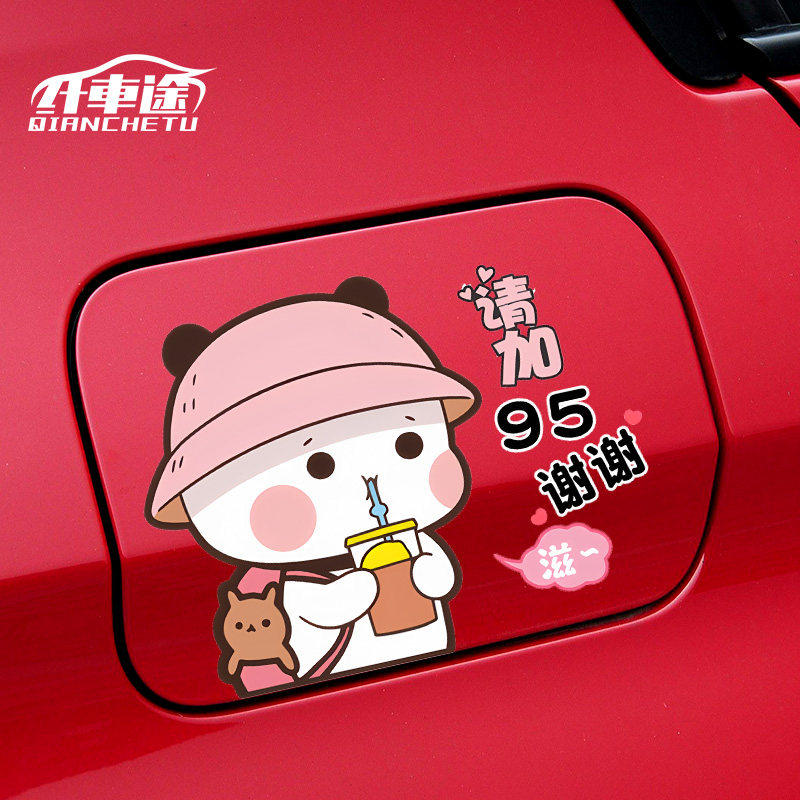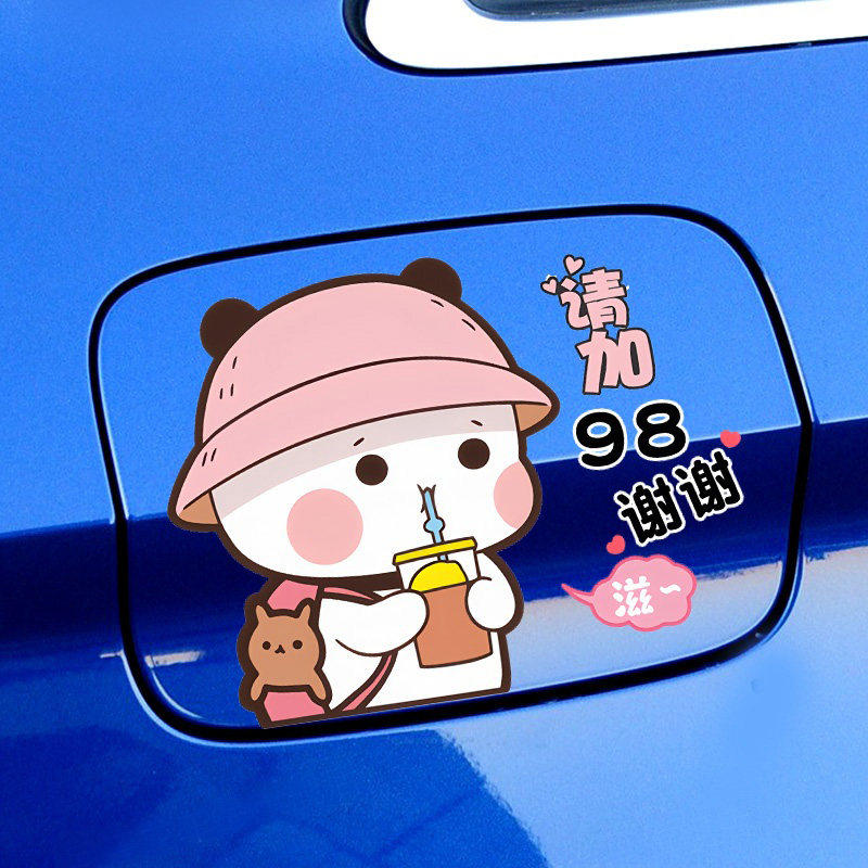 📚 汽车贴纸油箱盖车贴个性创意可爱一二布布加92加95加油遮挡标号贴