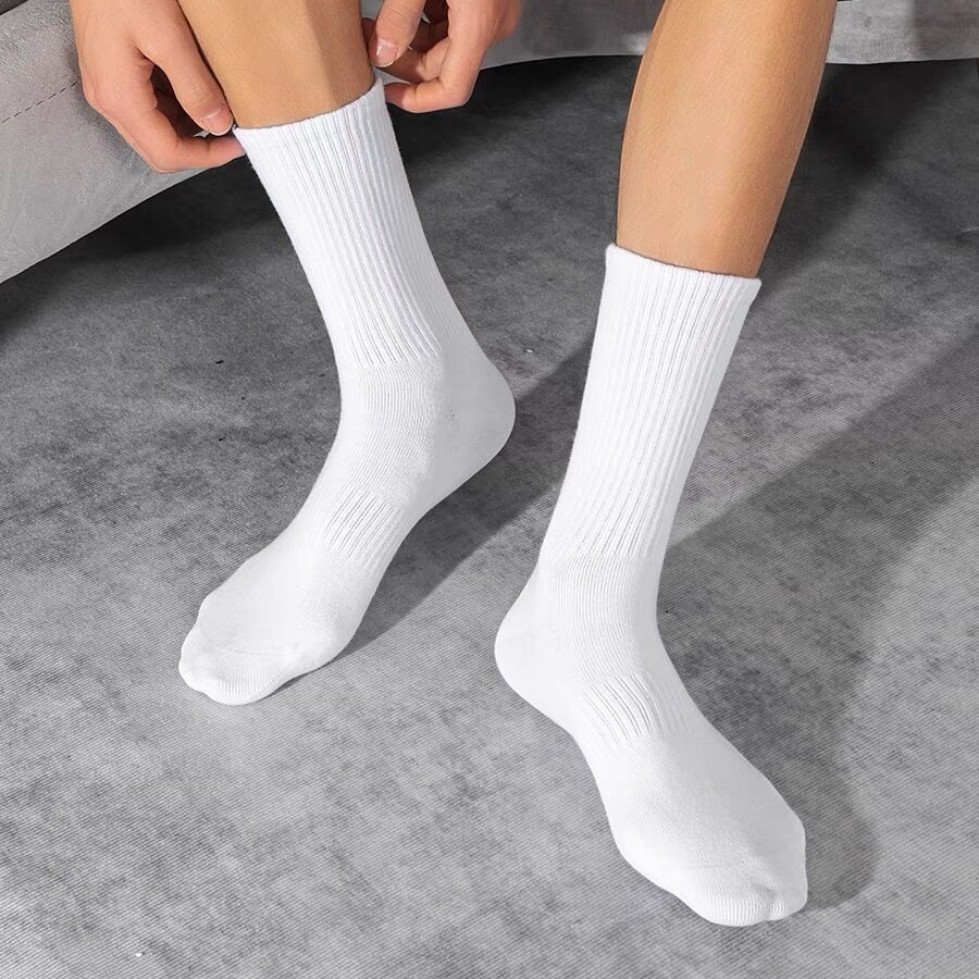 📚 3双秋冬新疆棉袜纯棉袜子男加厚白色运动袜防臭夏季长筒袜女白袜