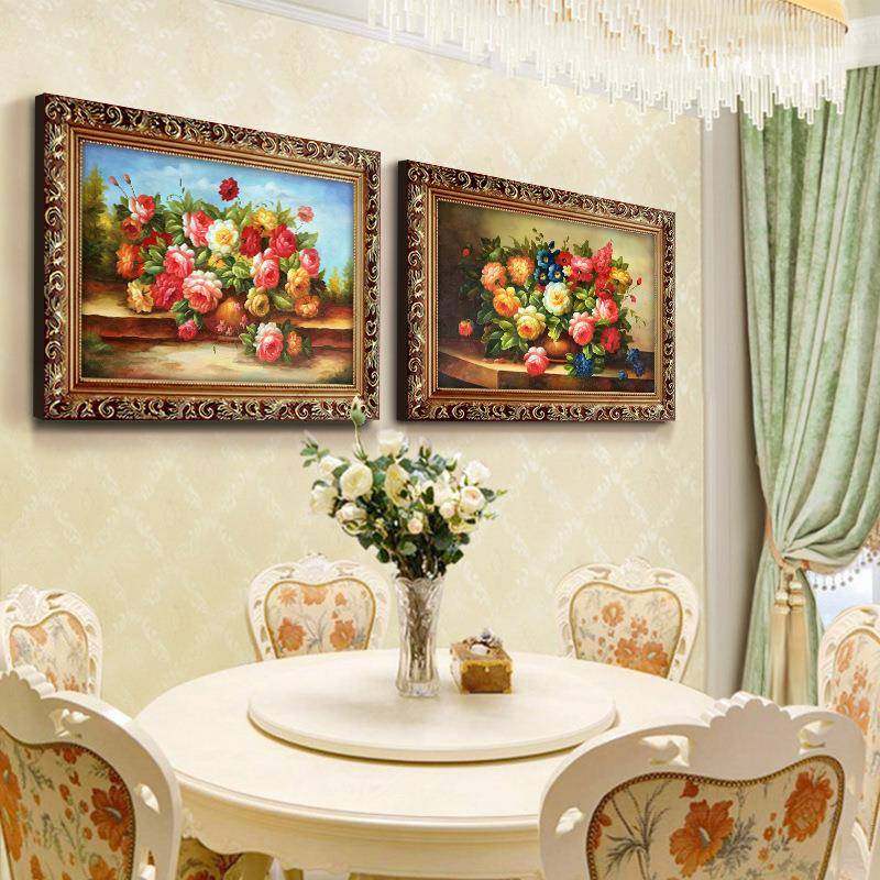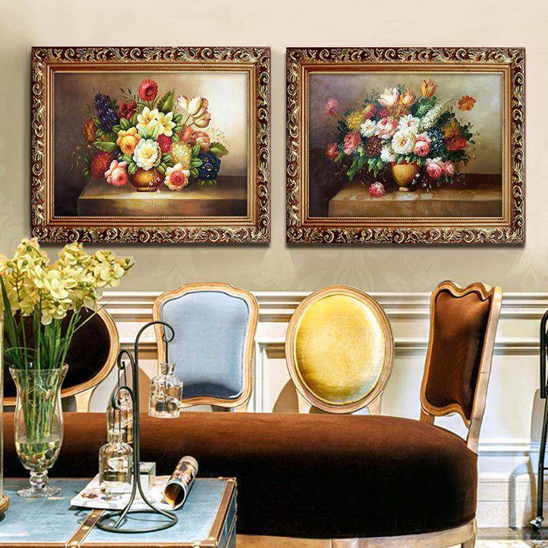 📚 挂画美式现代客厅装饰画欧式壁画卧室花卉有框画餐厅油画牡丹花