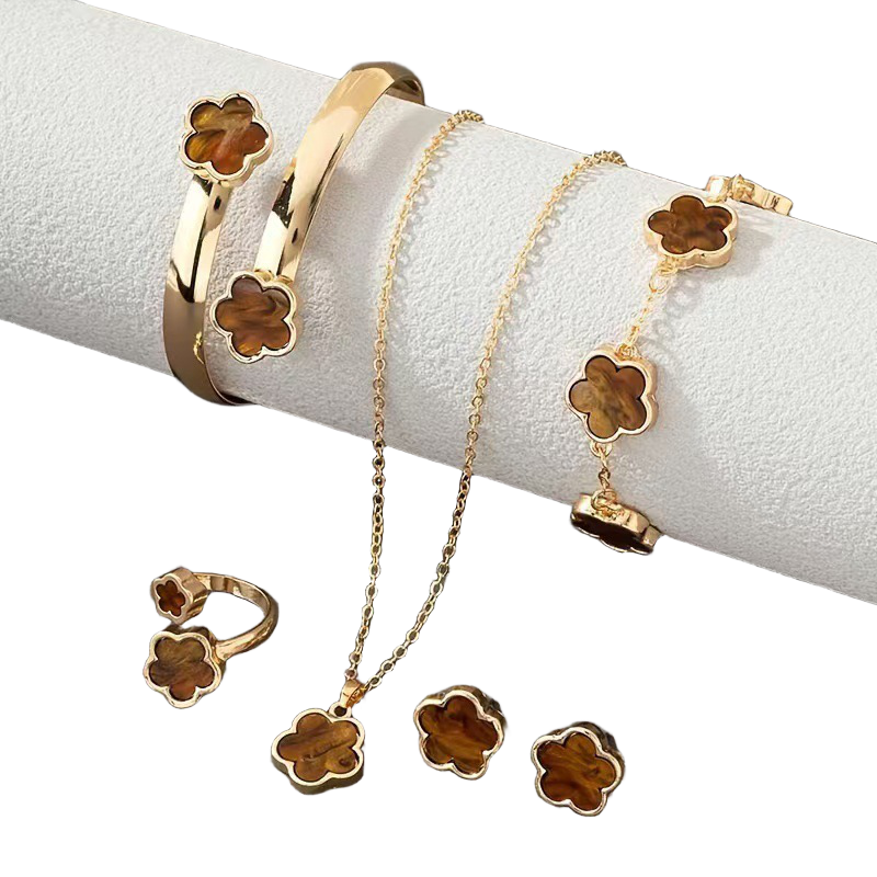 📚 跨境热销幸运花首饰套装亚克力手镯手链五叶草项链戒指耳钉女