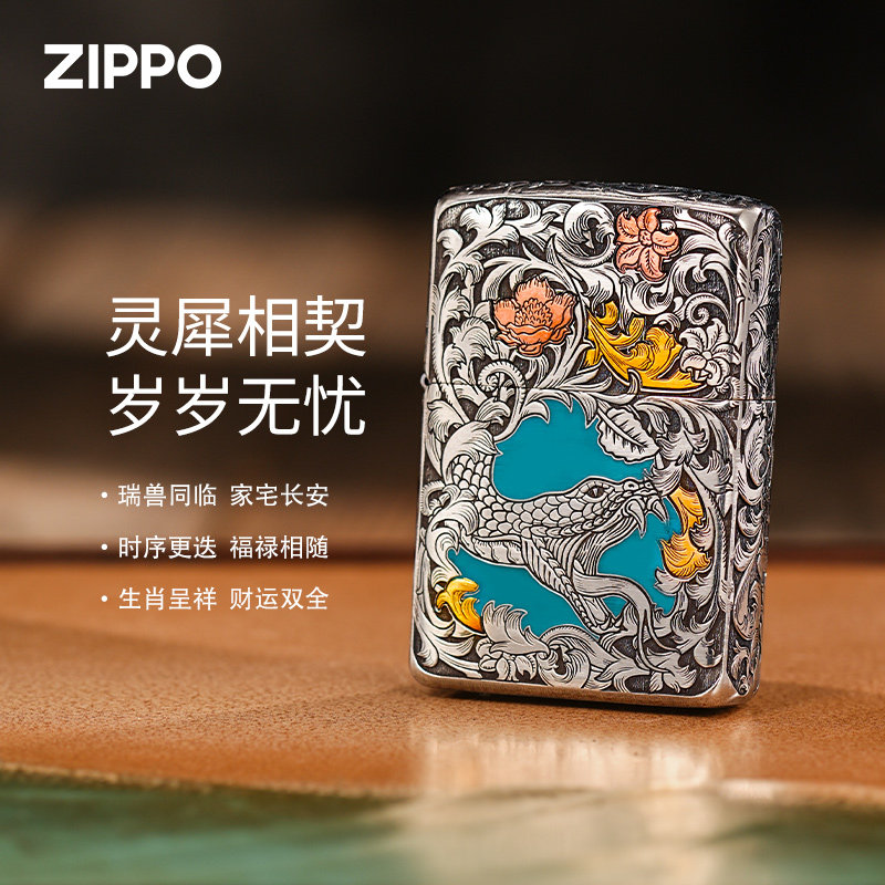 📚 zippo打火机十二生肖白钢重甲雕刻彩色漆官方正版煤油防风送男士