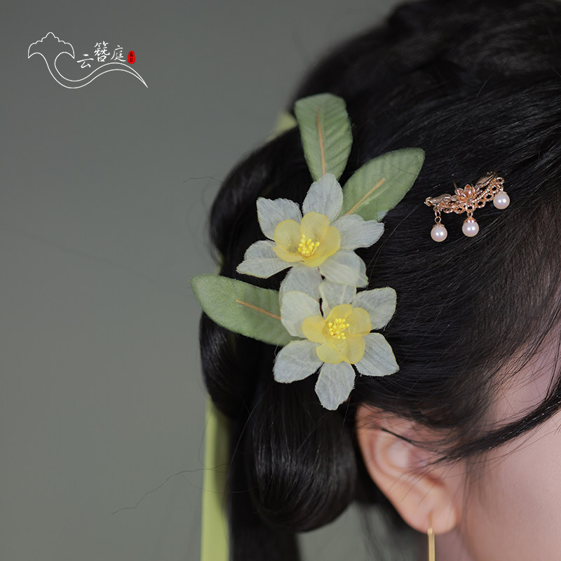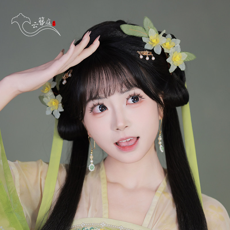 📚 古风水仙花发夹儿童对夹汉服配饰烫花头花头饰发饰2025新款春夏季