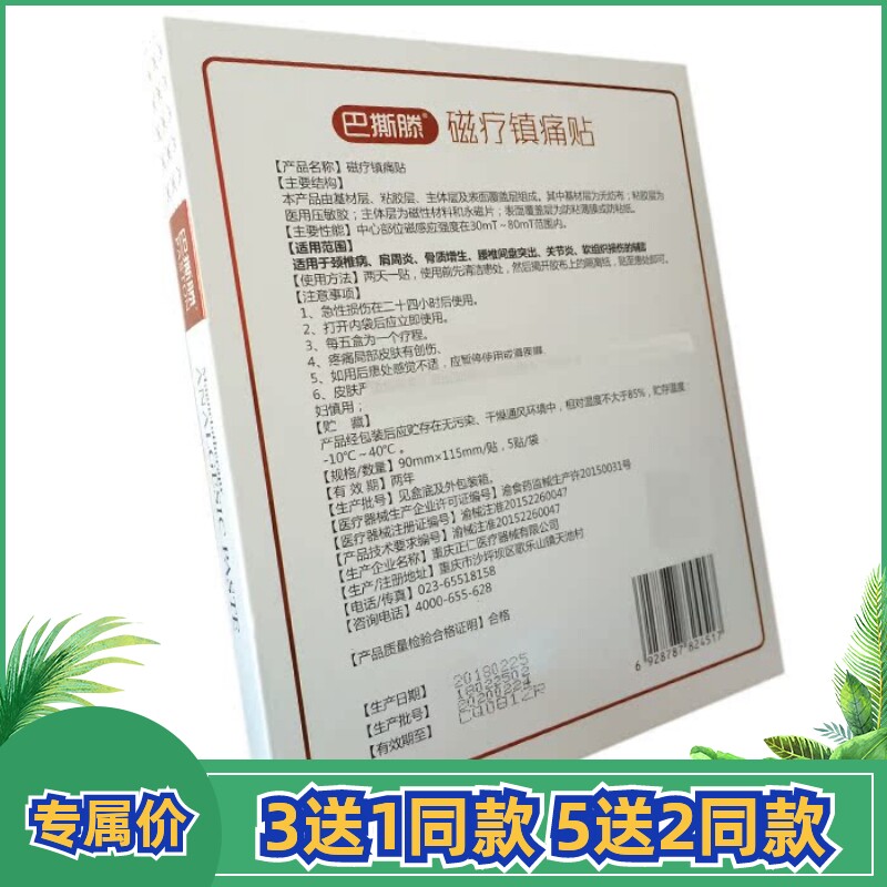 📚 渝正仁巴撕滕磁疗镇痛贴肩周骨质增生颈肩腰椎不适疼痛辅助膏5贴