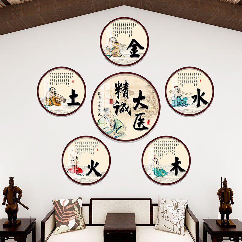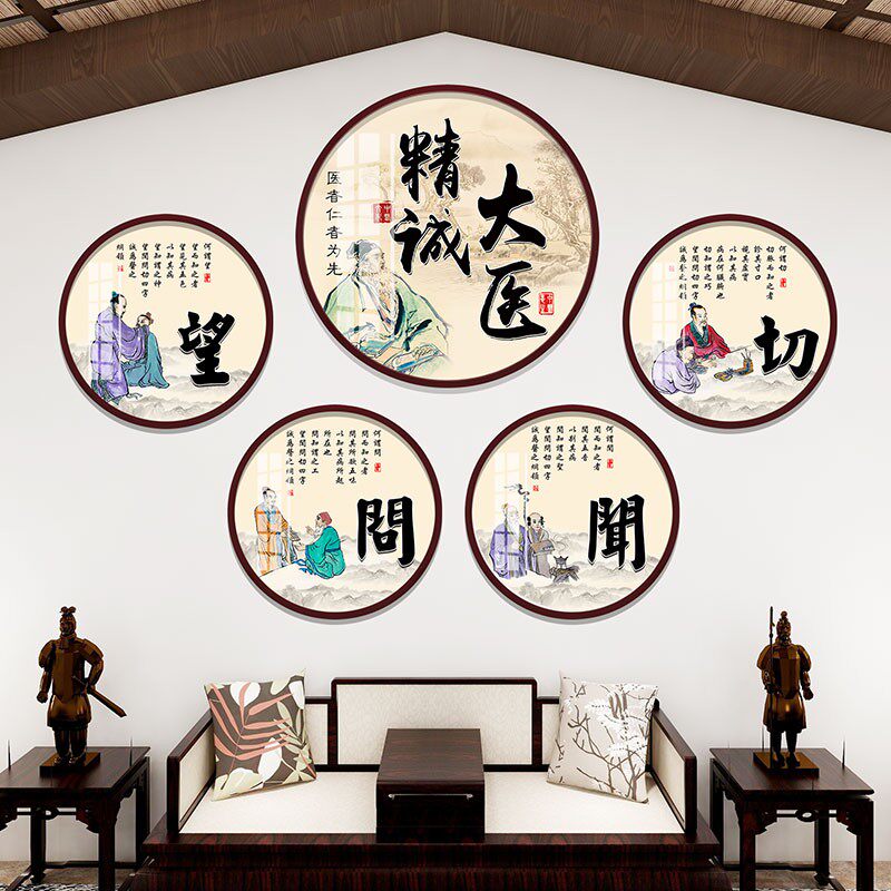 📚 网红中医馆形象背装景墙大精诚饰画望闻问切挂医画理疗养生字画精