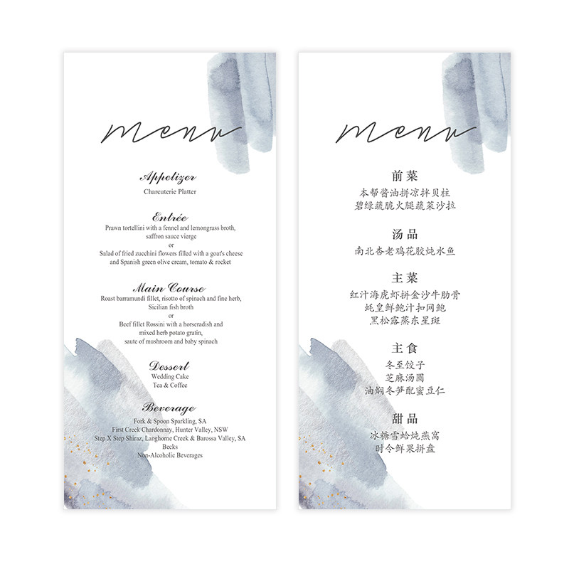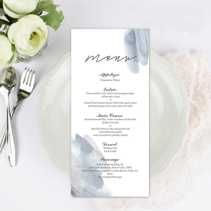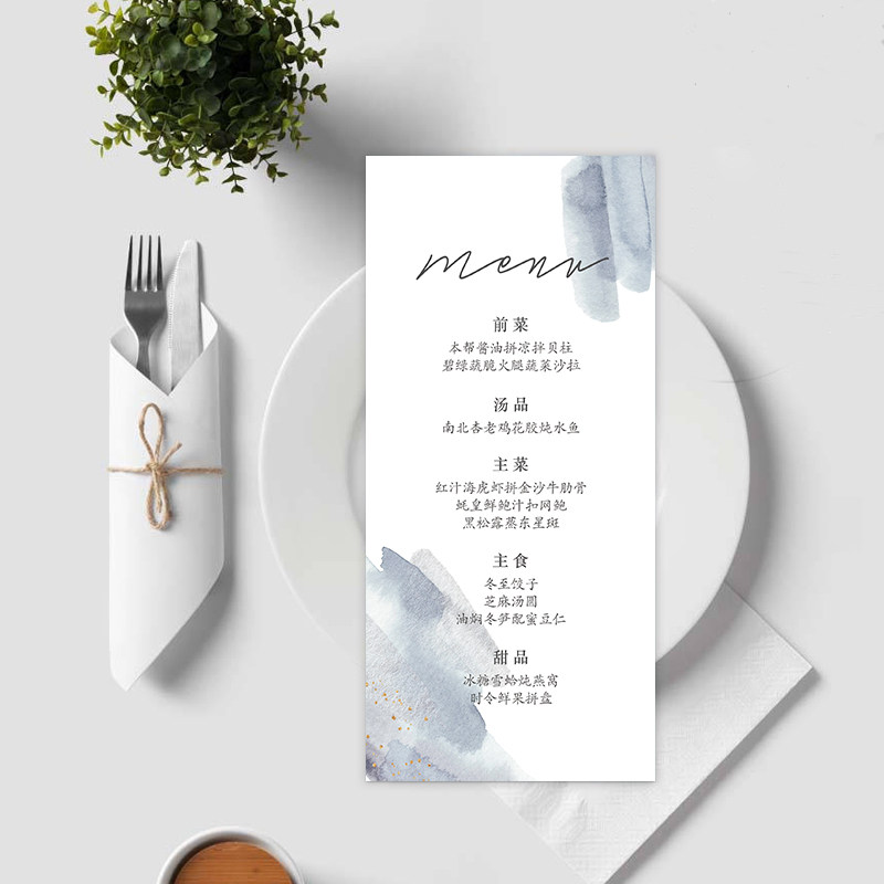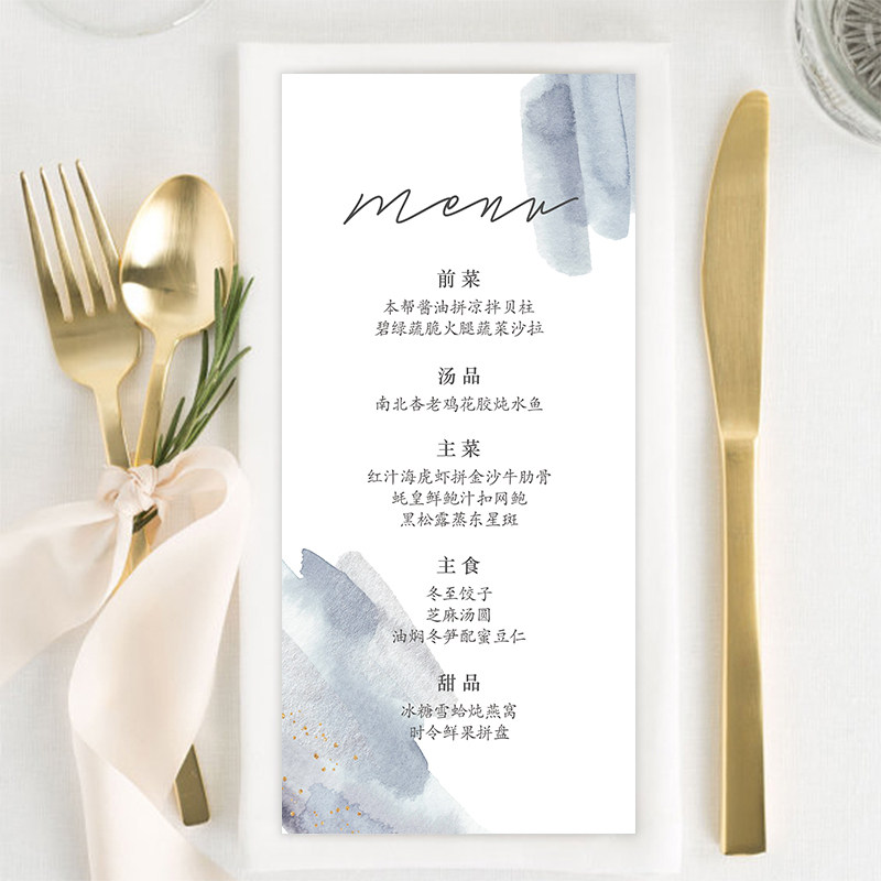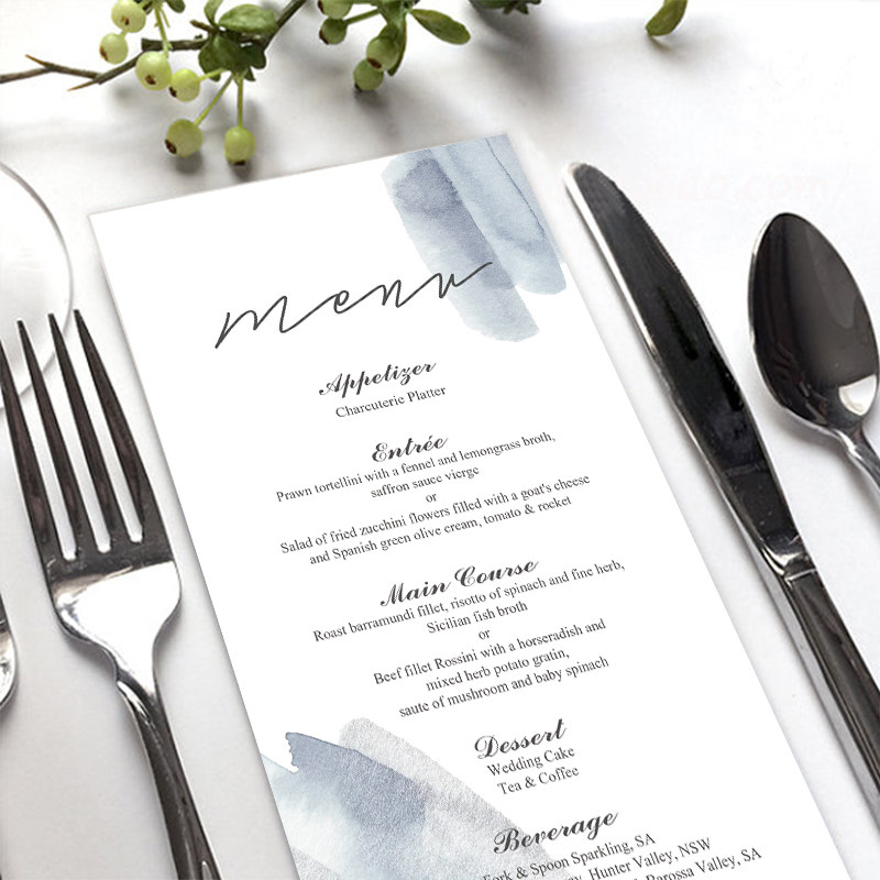 📚 定制雾霾蓝桌席卡婚礼流程节目单餐盘卡答谢卡片酒水卡单婚礼菜单