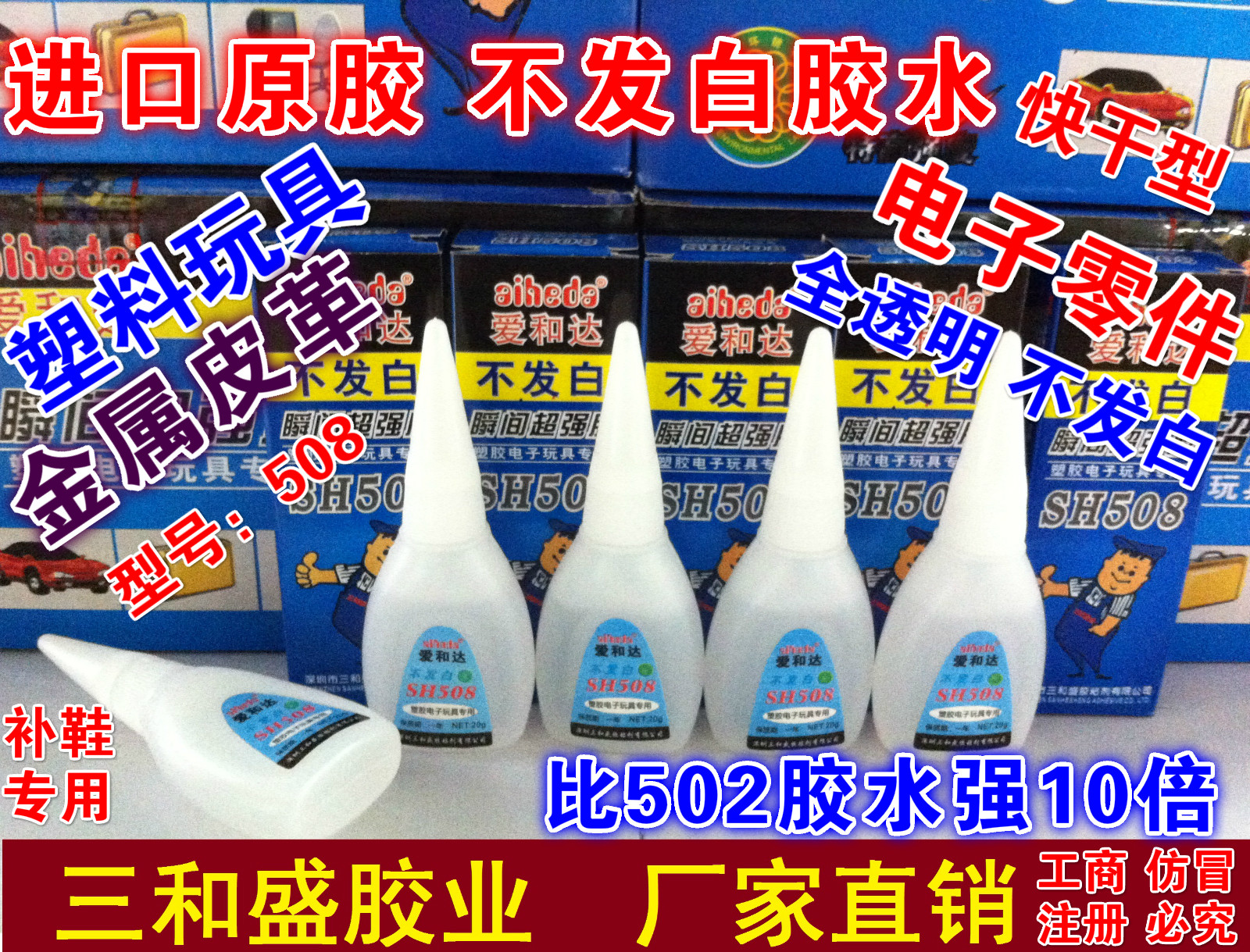 📚 爱和达508不发白胶水SH508胶水强力3秒快干胶水无边字亚克力包邮