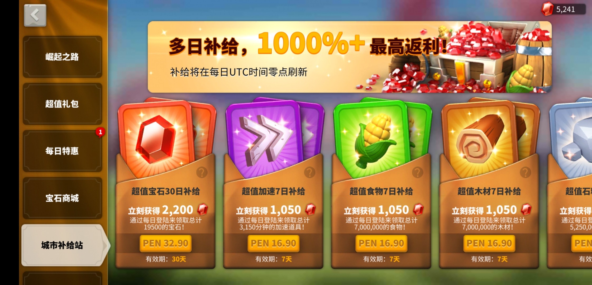 📚 万国觉醒代充ROK国际服宝石成长基金月卡远古智慧大小龙超值礼包