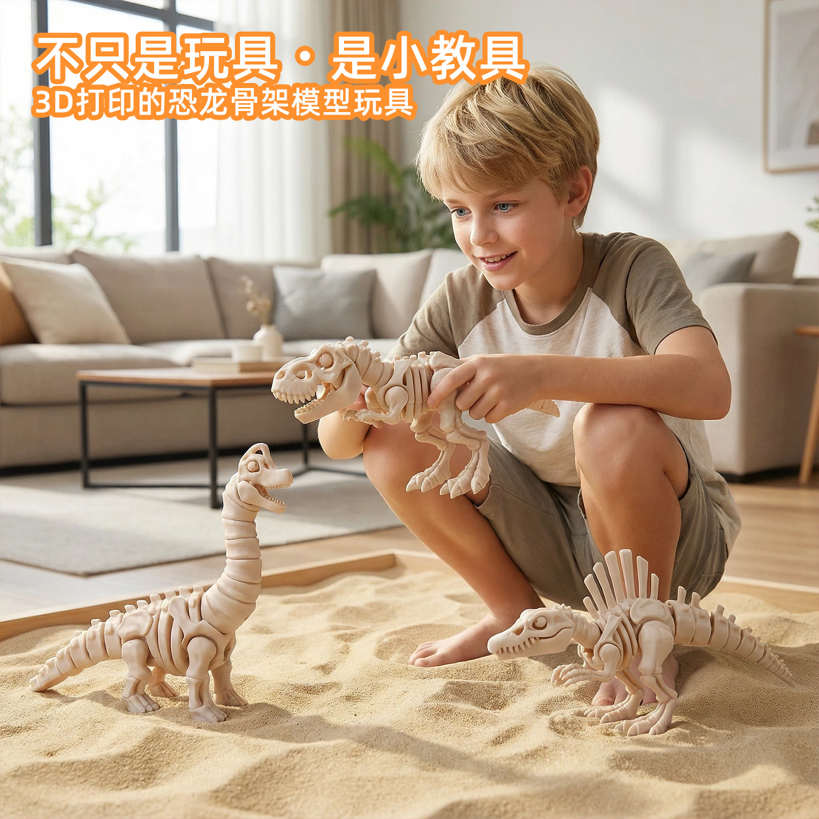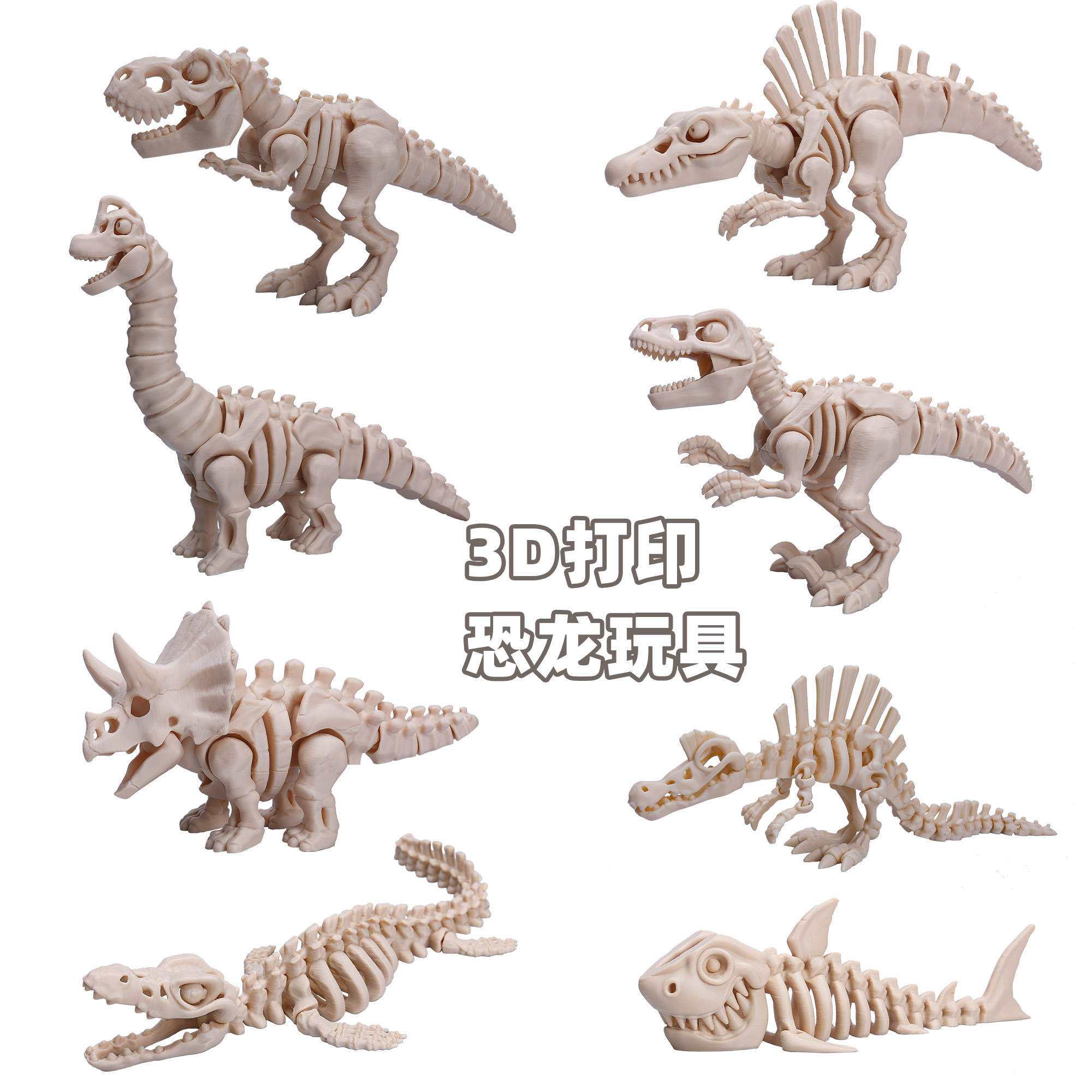 📚 侏罗纪恐龙骨架3D打印玩具霸王龙棘背龙沧龙骨头工艺摆件创意手办