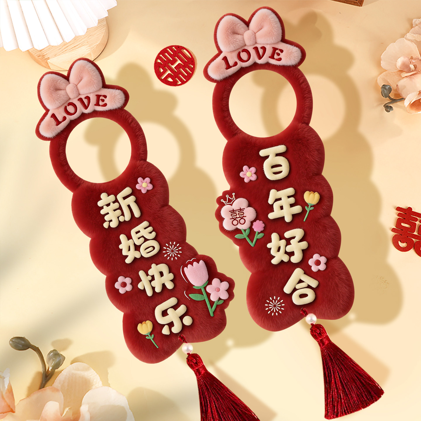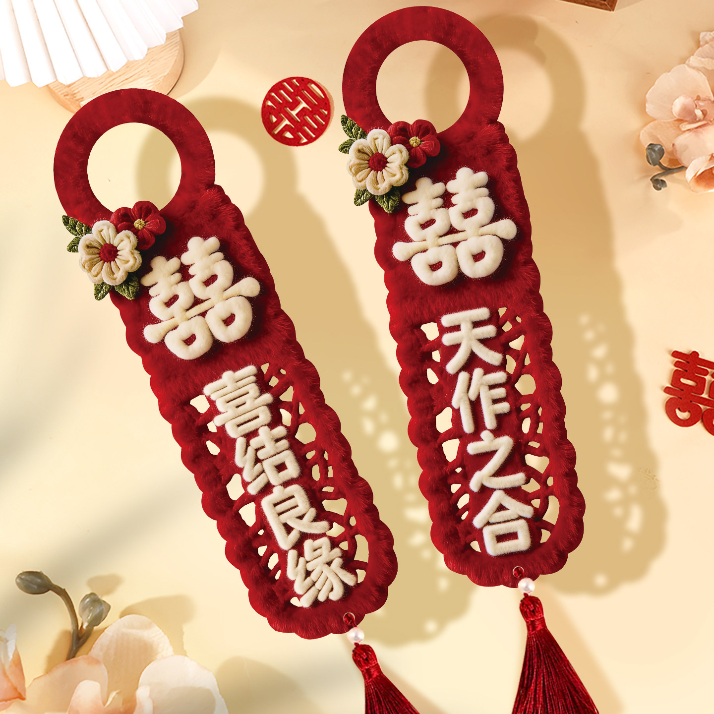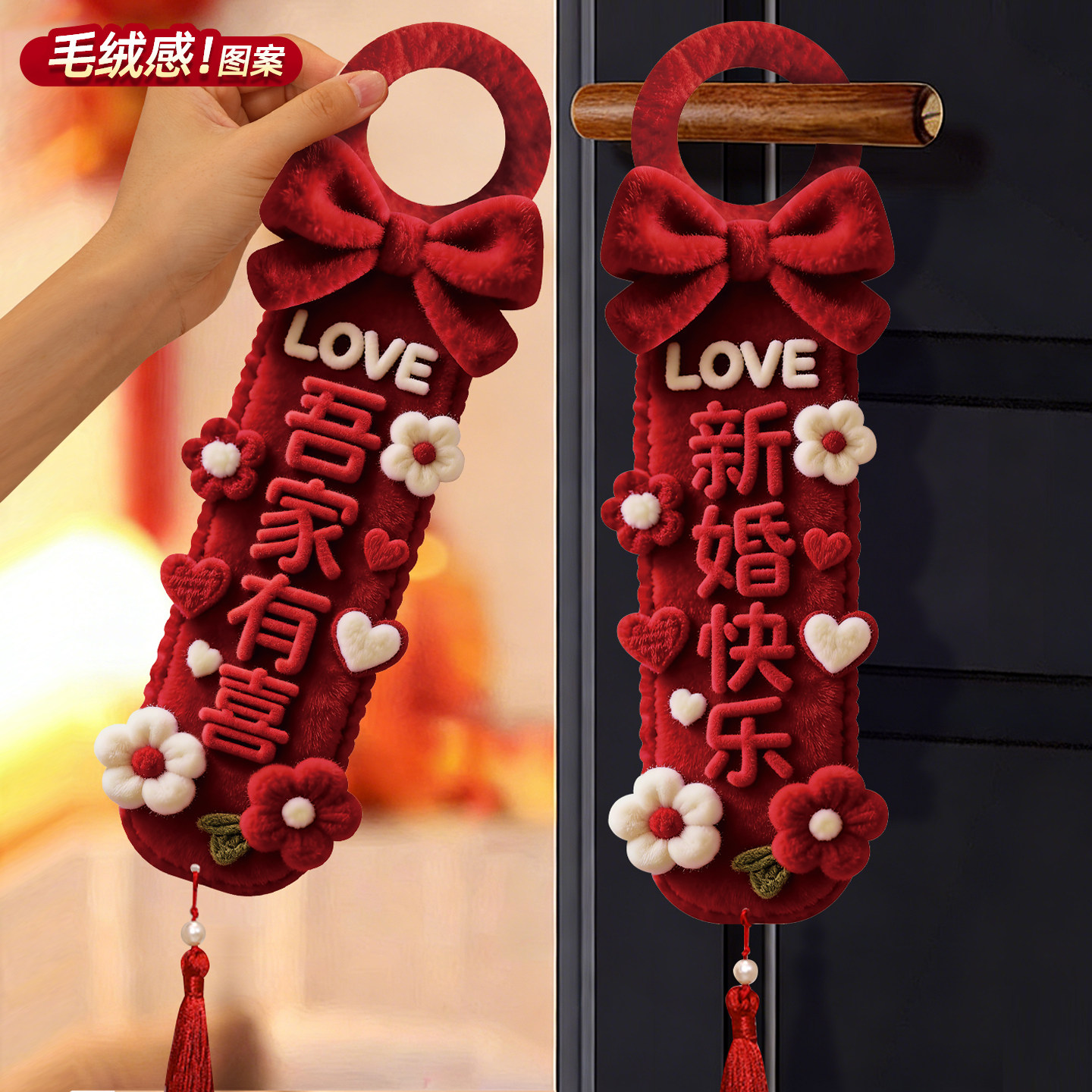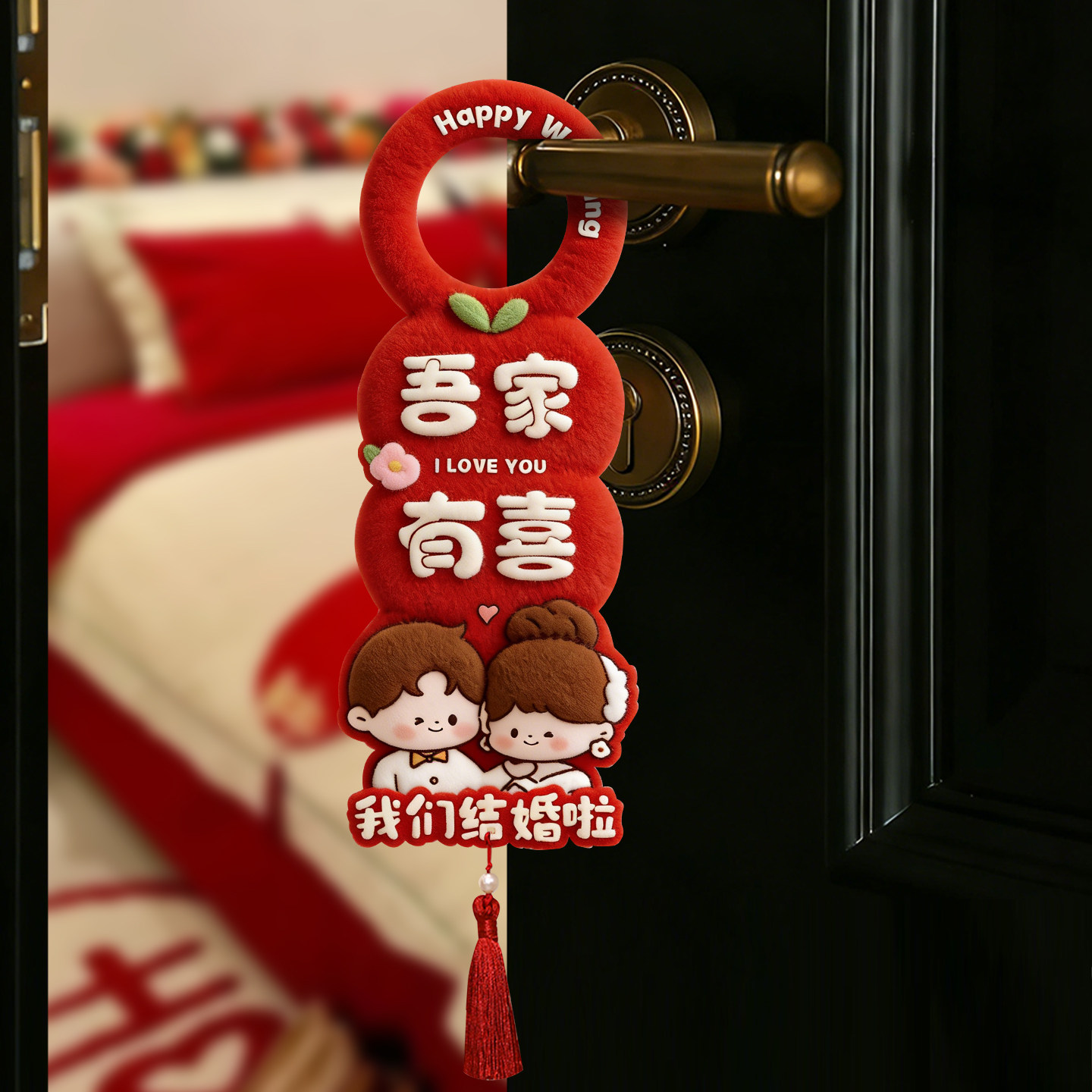 📚 结婚门把手挂件婚房布置装饰喜字房门男女方新房门口卧室氛围感
