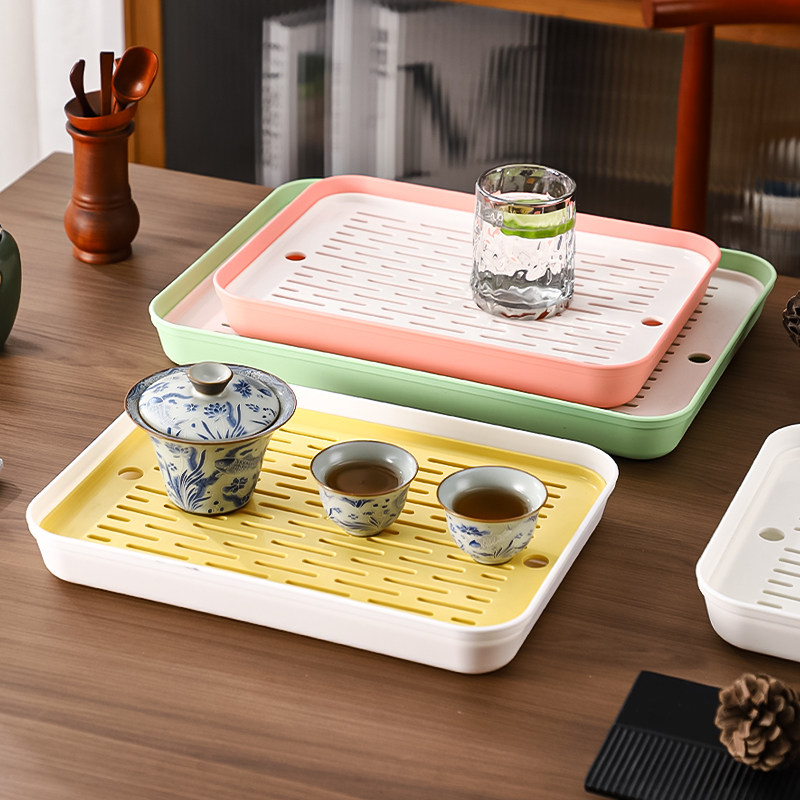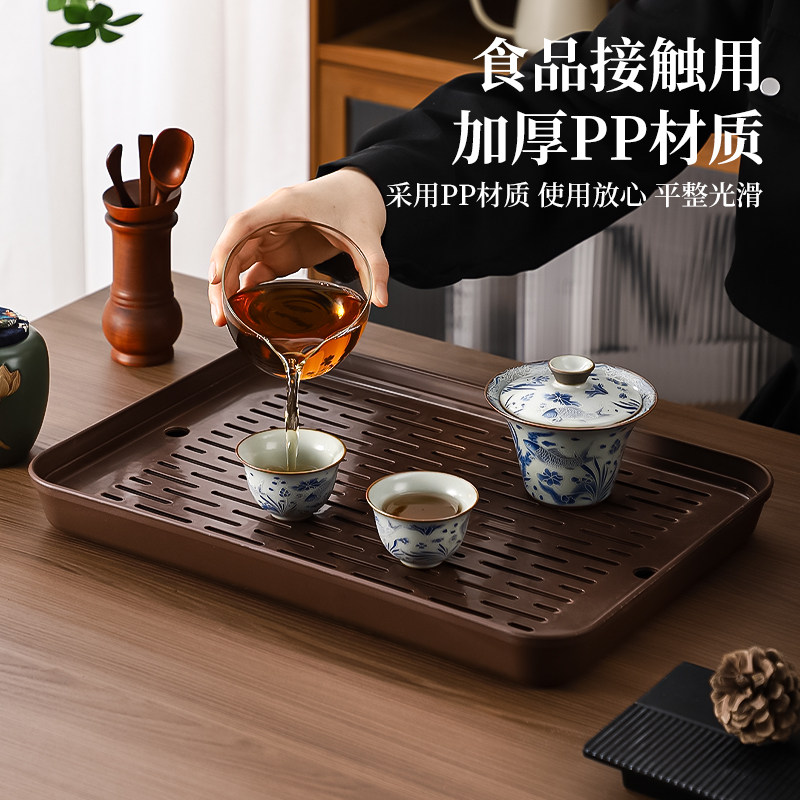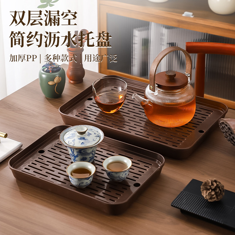 📚 家用双层式沥水茶盘茶台加深款茶杯茶具沥水托盘客厅蓄水式置物盘