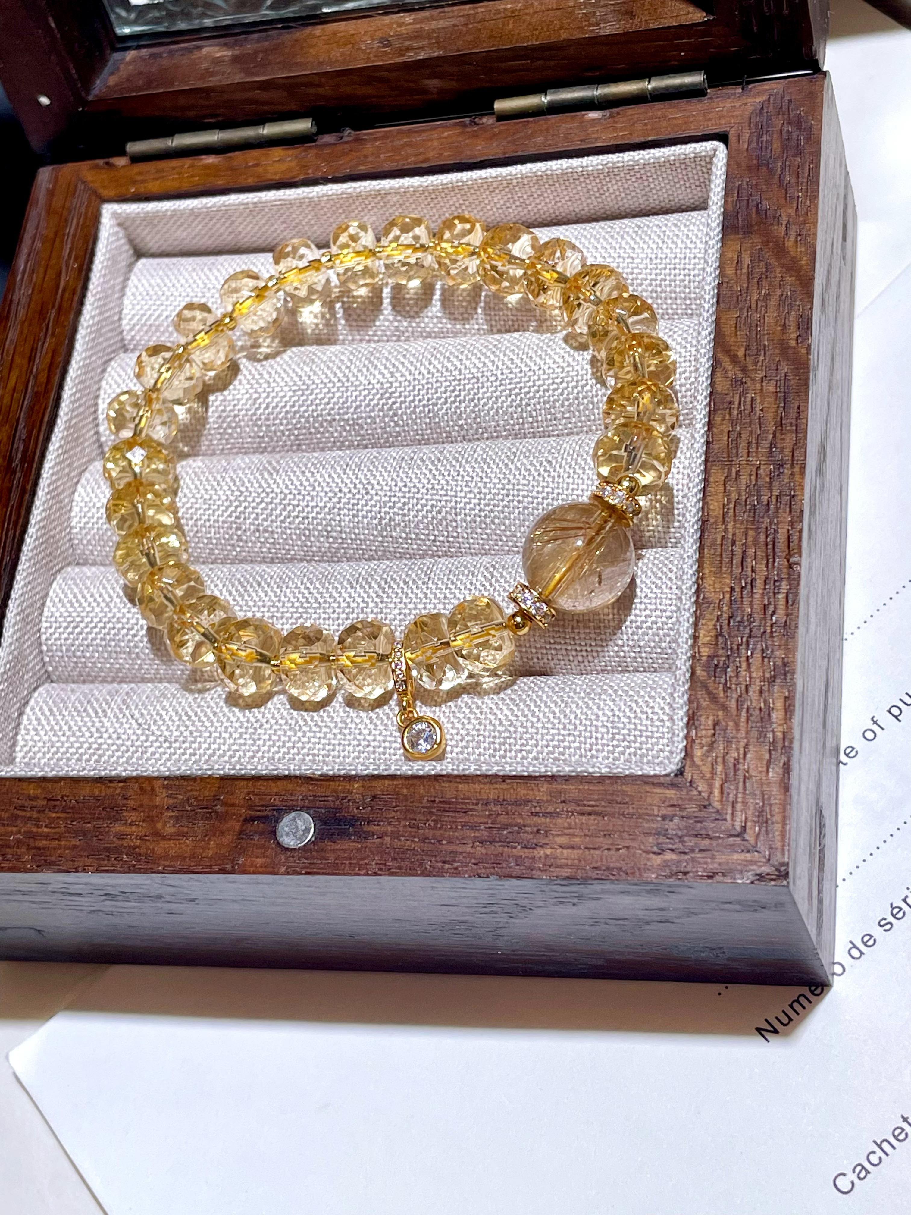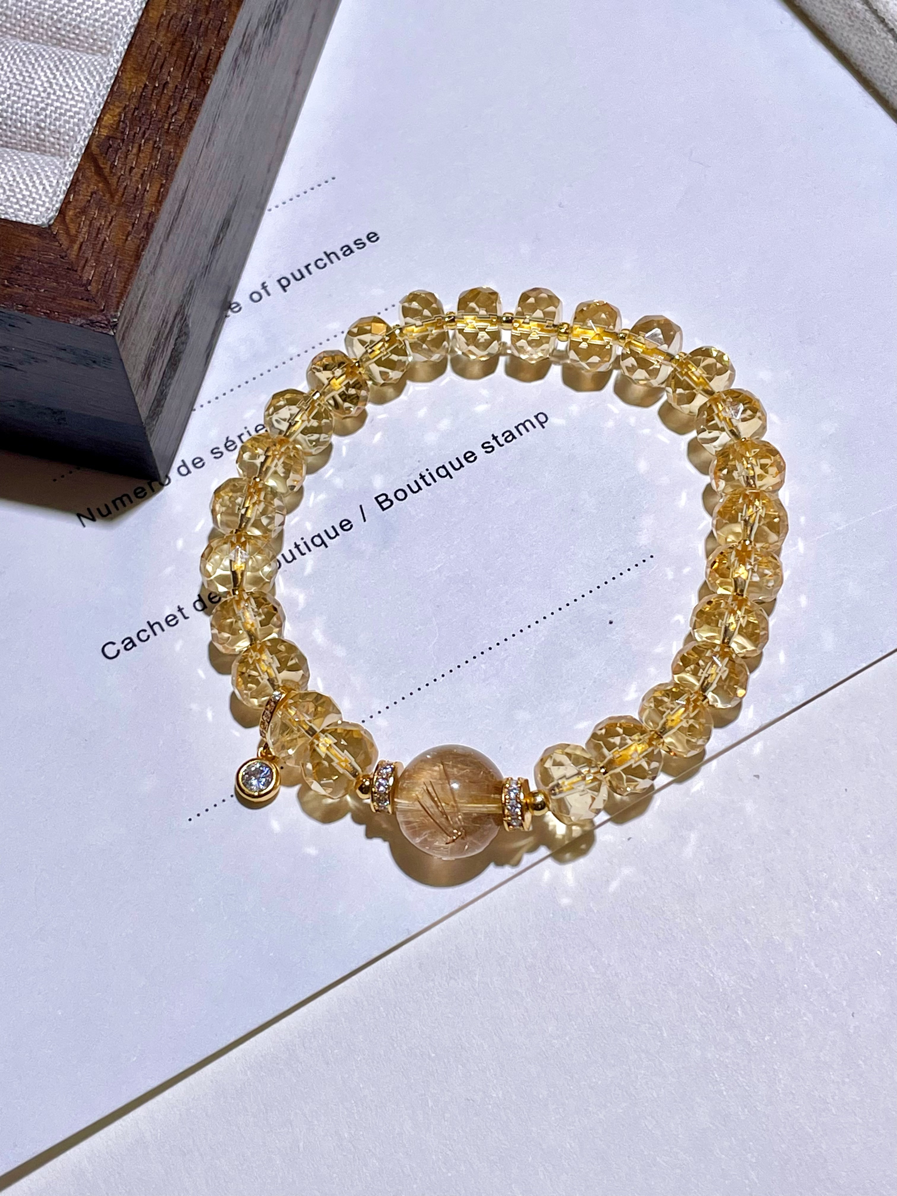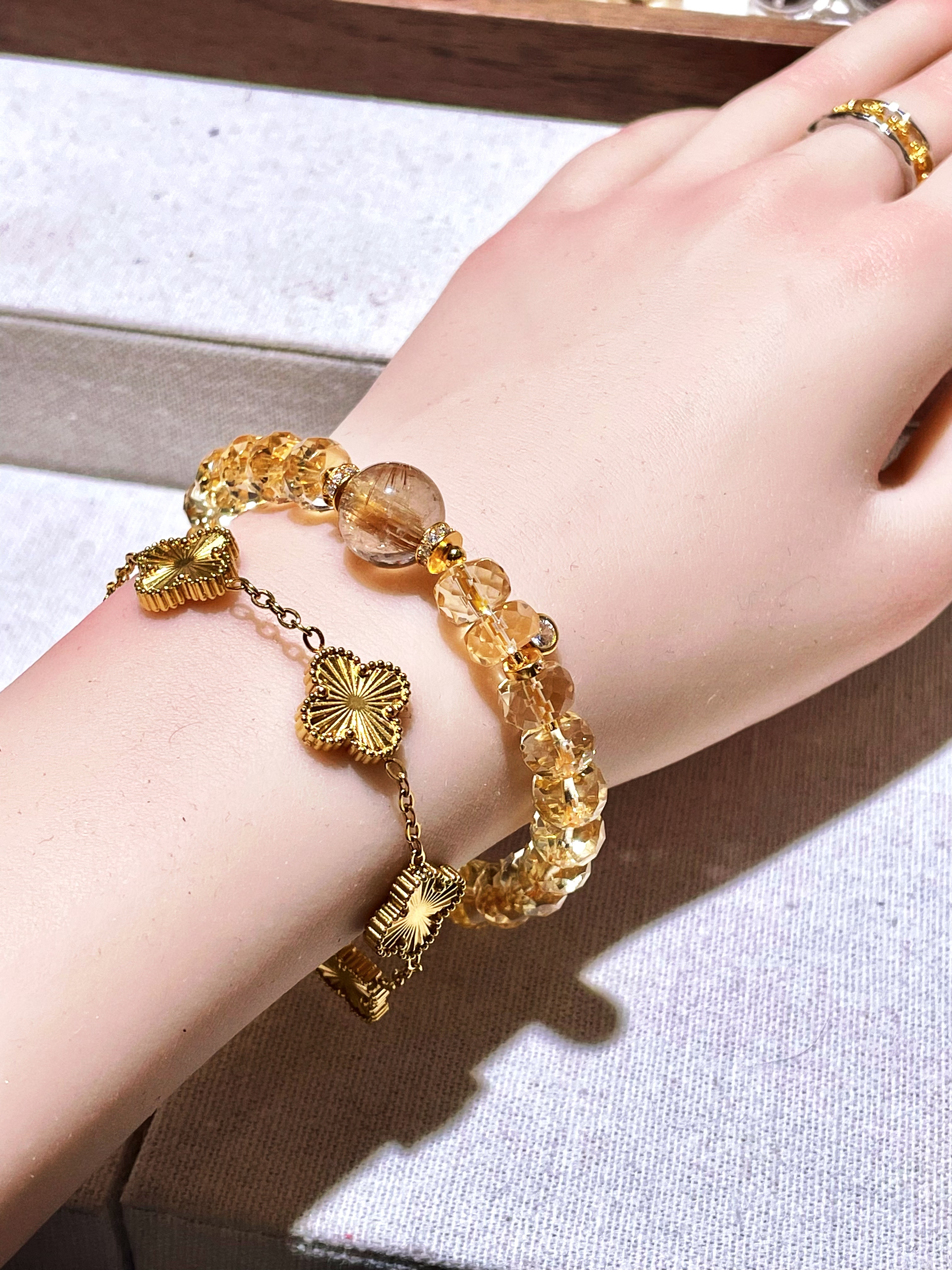 📚 「金晶开挂」天然全净体黄水晶手串轻奢单圈金发晶手链转运珠