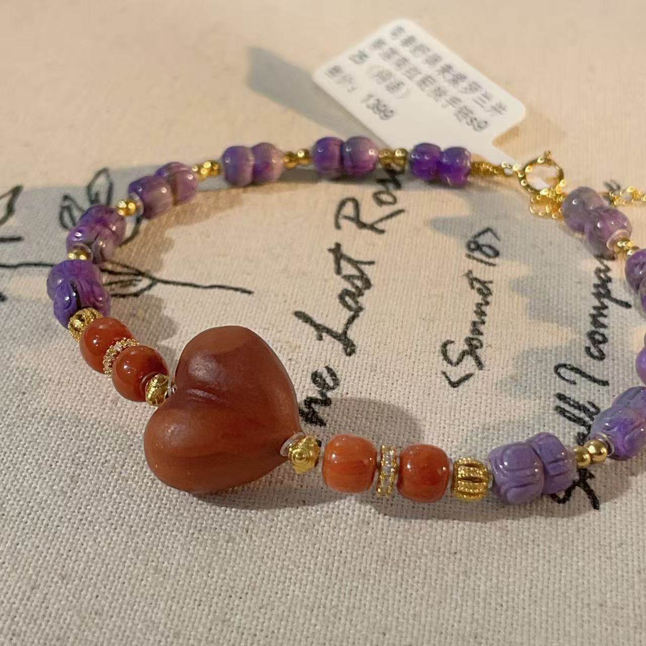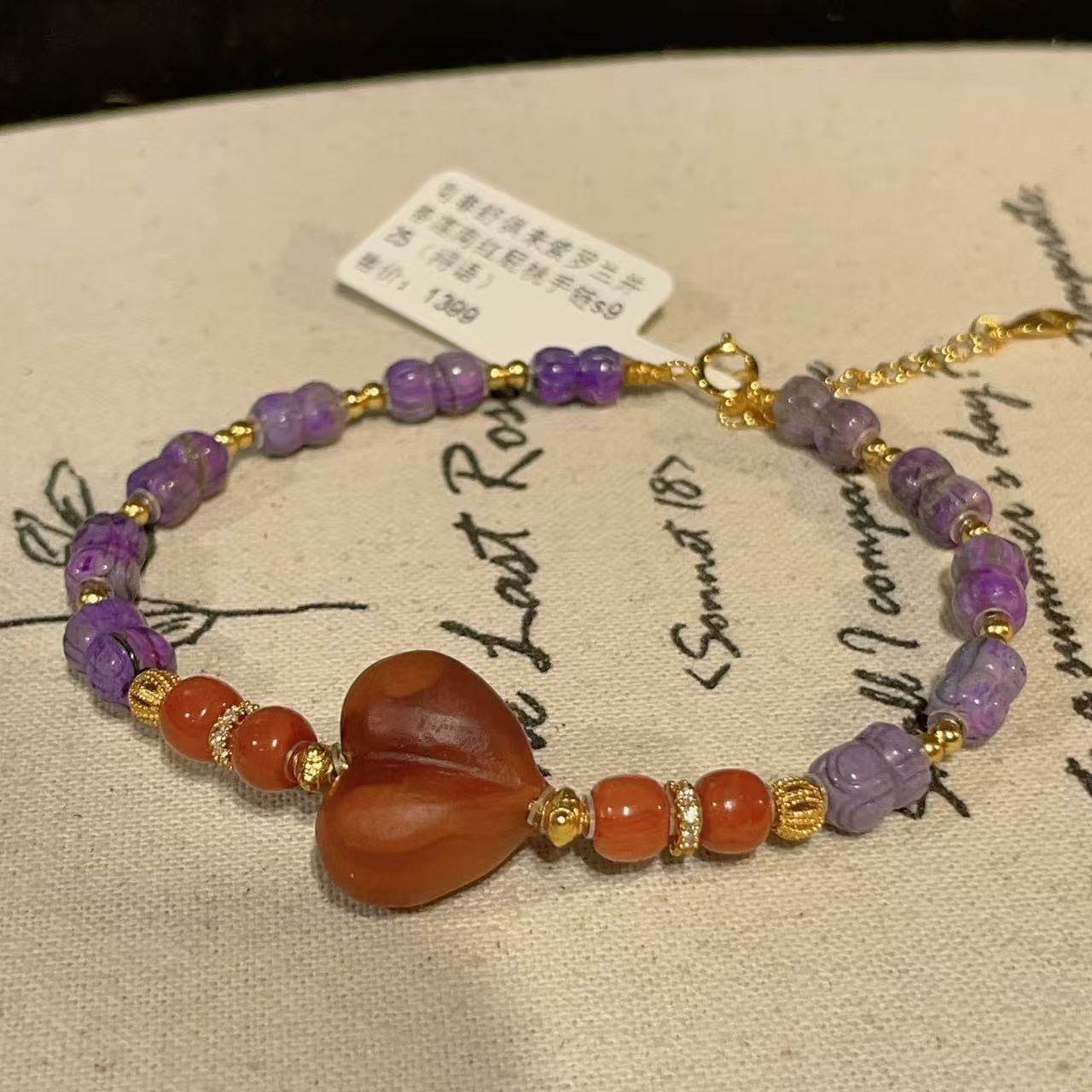 🌸入手体验:南非舒俱来紫罗兰并蒂莲南红屁桃手链,券后价699!