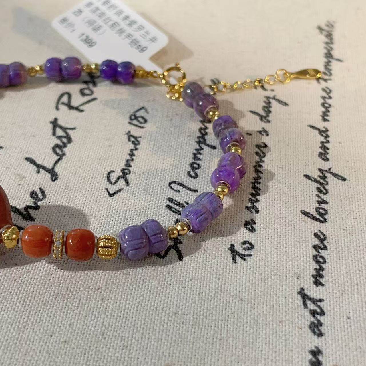 📣总结:如果你也喜欢时尚、优雅的手链,那么这款南非舒俱来紫罗兰并蒂莲南红屁桃手链绝对是你的不二之选!赶快行动吧,让这款手链成为你穿搭的亮点吧!