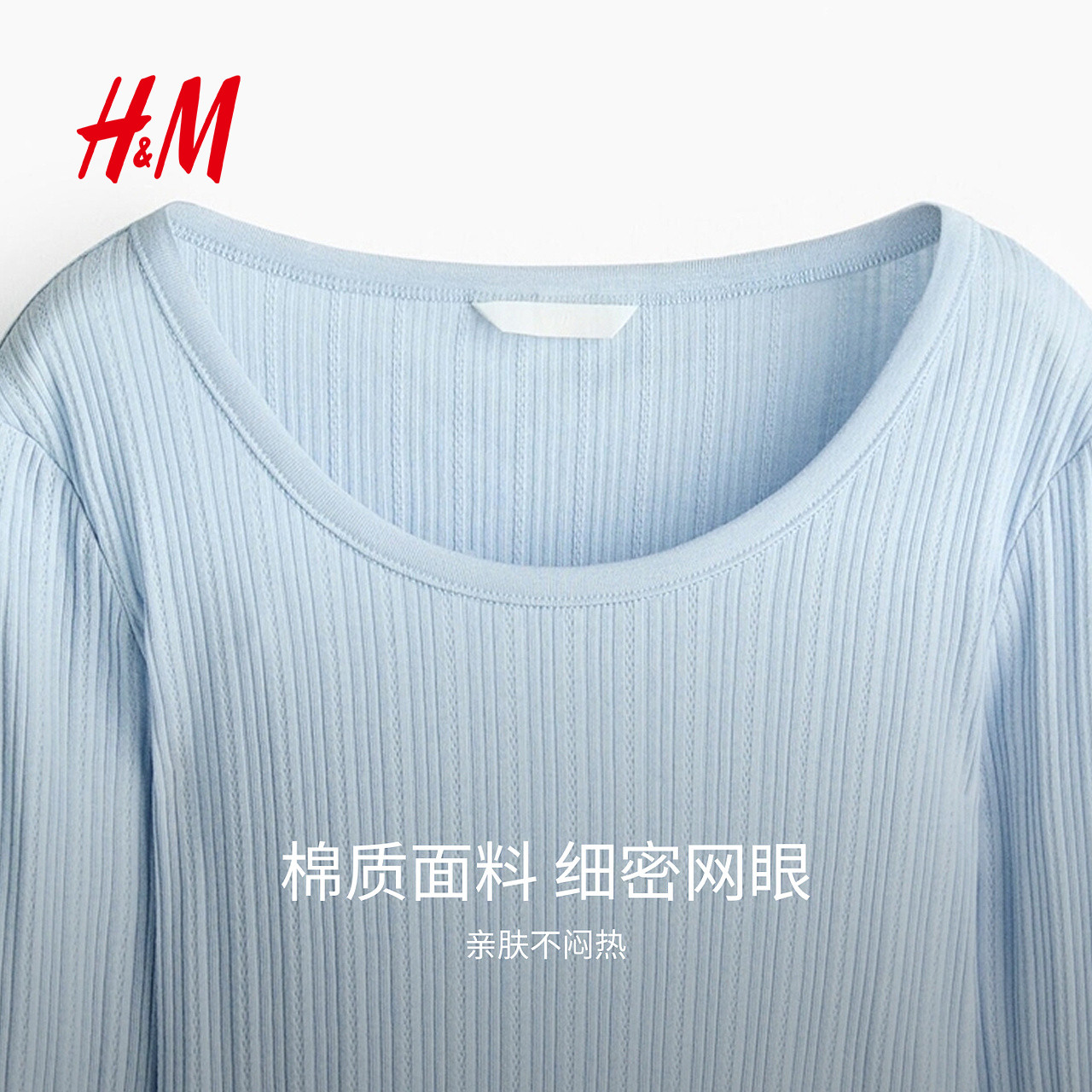 📚 HM女装T恤2026春季新款通勤修身气质网眼汗布内搭长袖上衣1324031