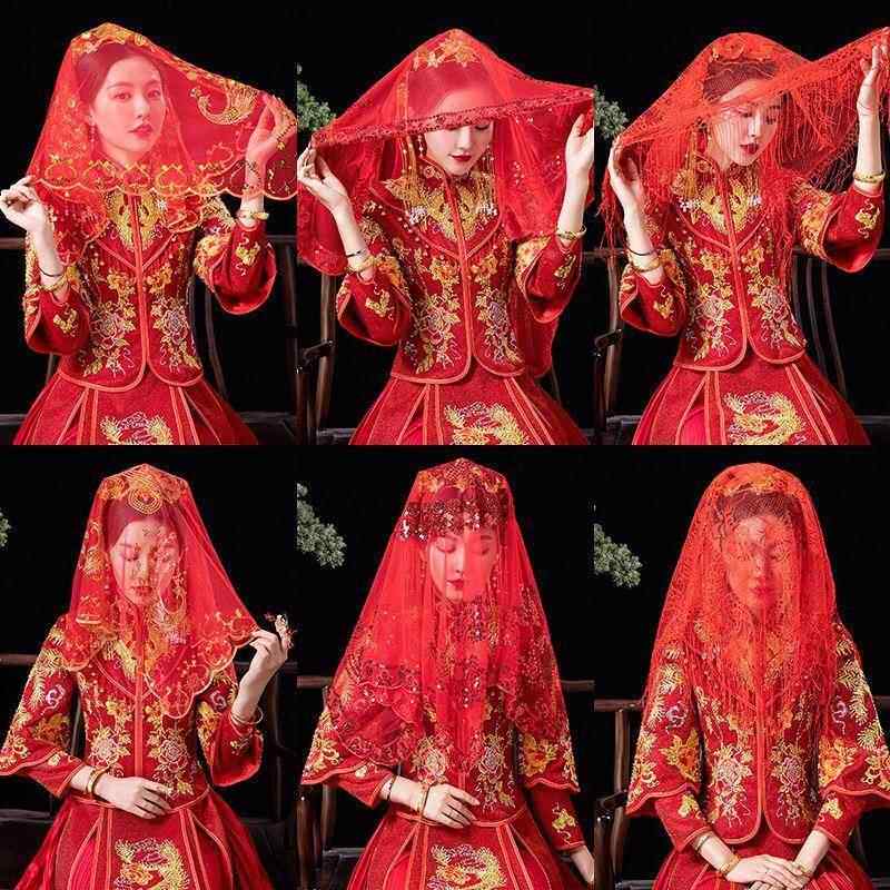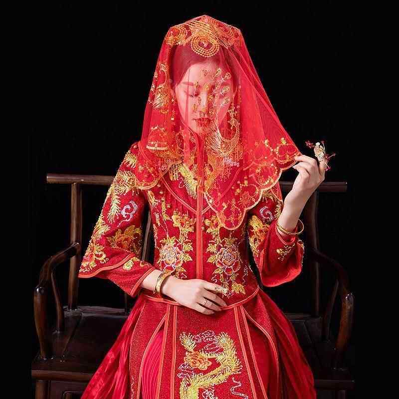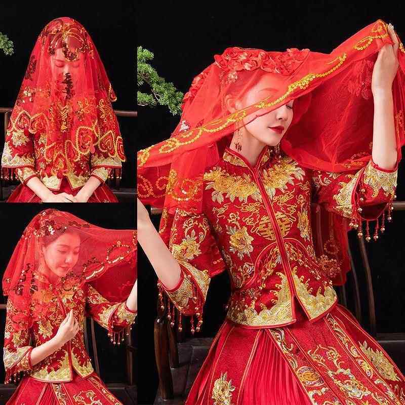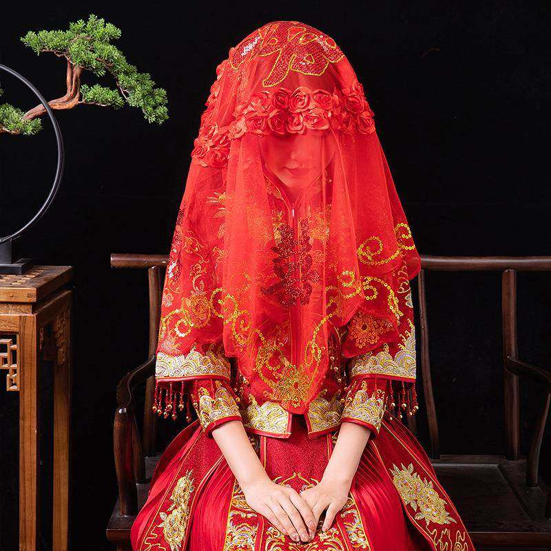 📚 红盖头新娘软纱结婚2026半透明纱头纱秀禾服蒙头喜帕中式婚礼红色