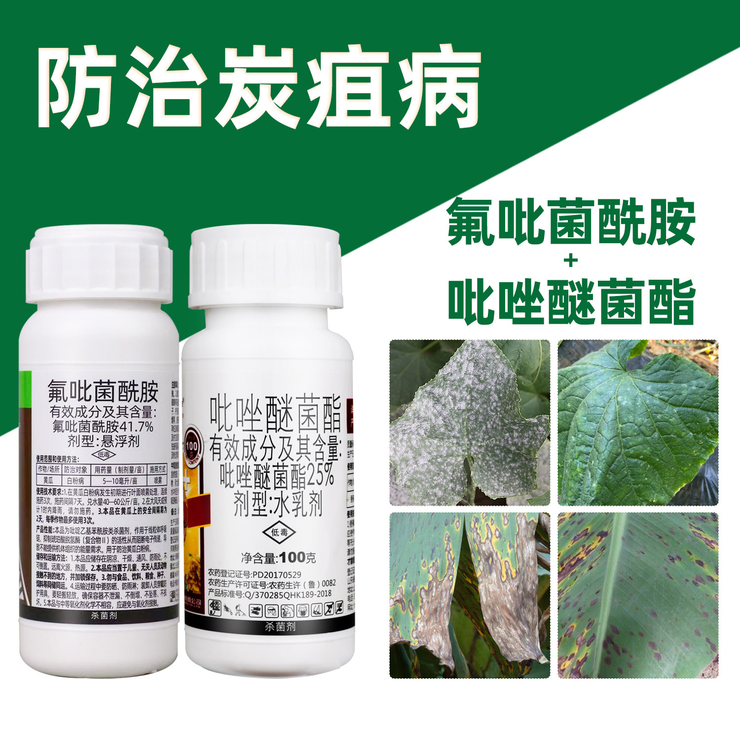 📚 41.7%氟吡菌酰胺25%吡唑醚菌酯黄瓜白粉叶斑炭疽病农药杀菌剂组合