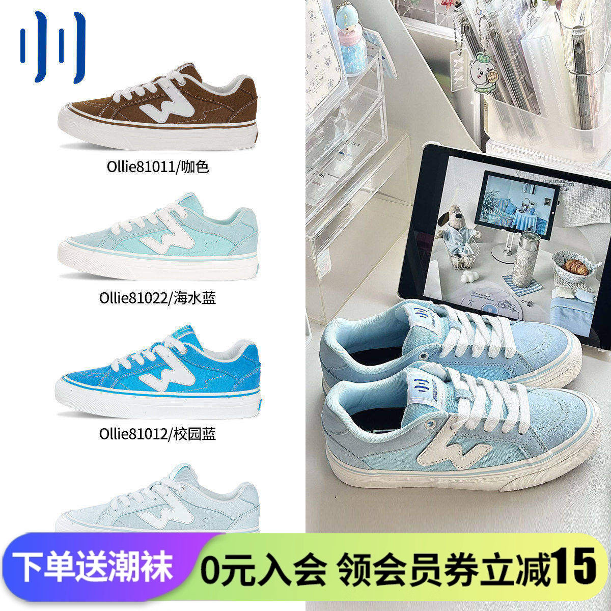 🔥"踏浪而来!顽刻ollieskate海水蓝春季校园风W系列翻毛皮帆布男女国潮滑板鞋,让你爱不释手!"