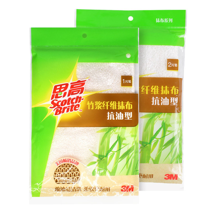 📚 3M思高天然竹浆纤维抗油型吸水抹布厨房抹布洗碗布清洁抹布1片2片