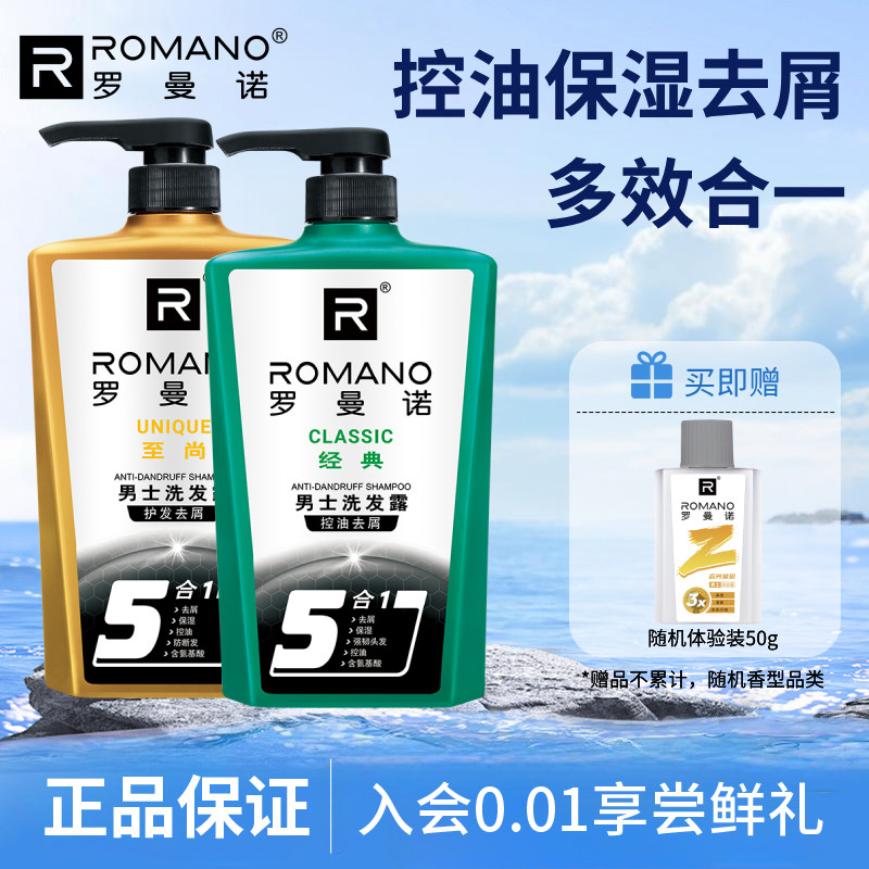 📚 罗曼诺洗发水男士洗头膏护发控油蓬松去屑止痒沐浴露套装持久留香