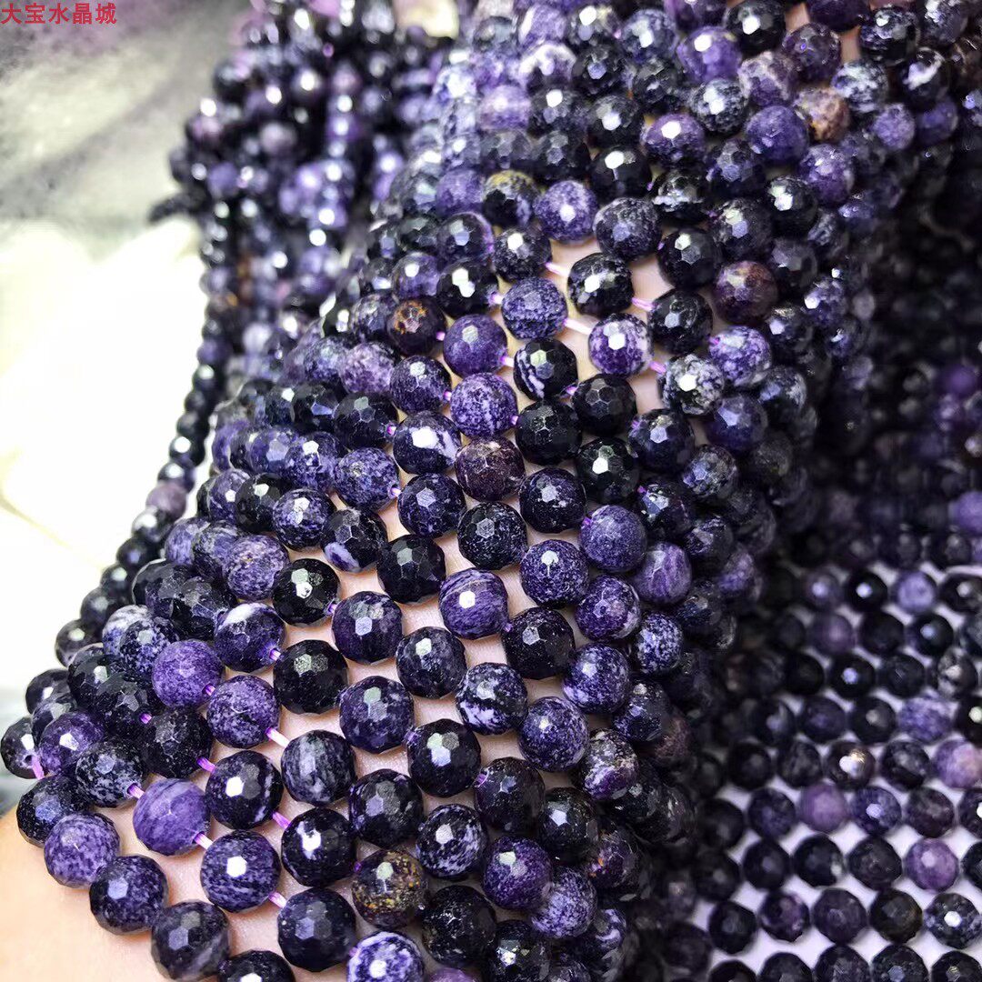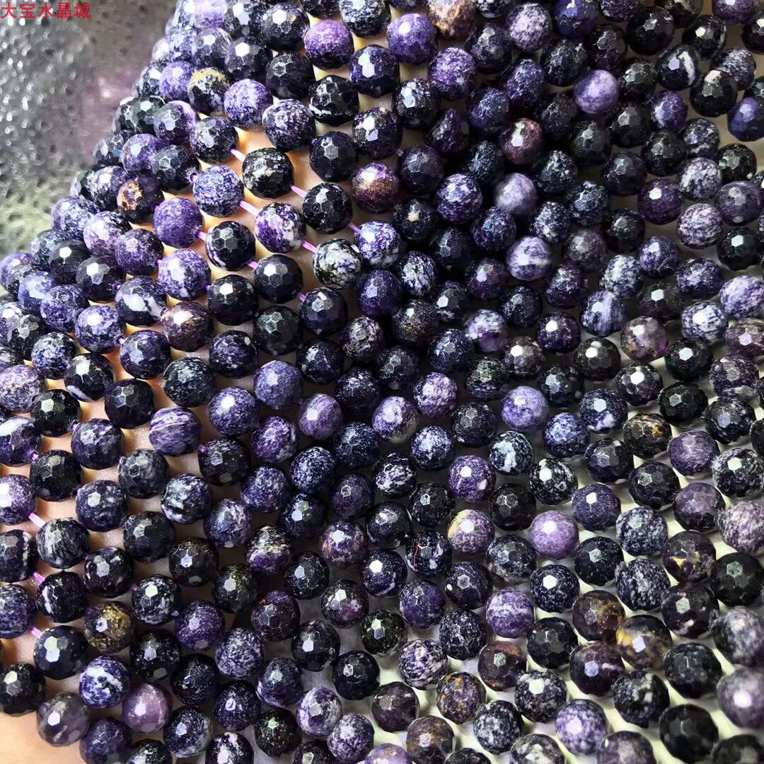 📚 天然紫苏舒俱来切面刻面128面散珠半成品苏俱来宝石手链脚链配珠