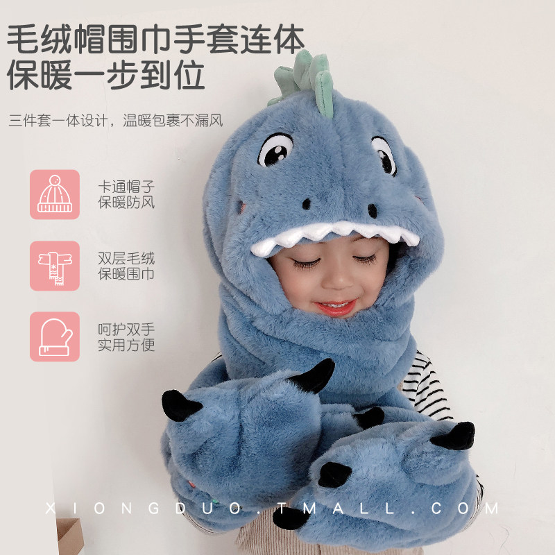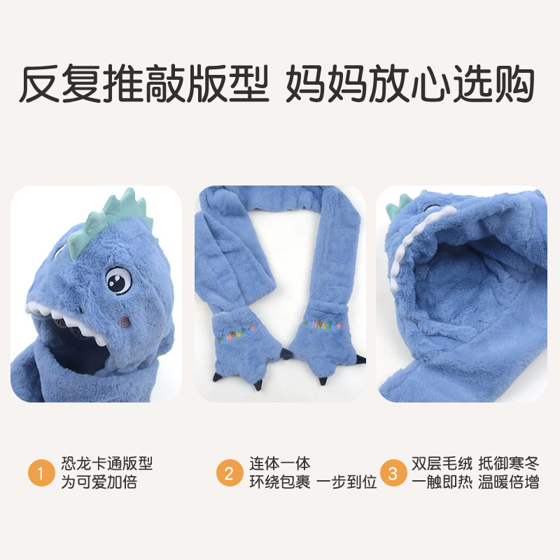 #儿童帽子 #冬季男孩围脖 #围巾一体手套 #恐龙三件套 #券后价 #秋冬新品 #宝宝必备