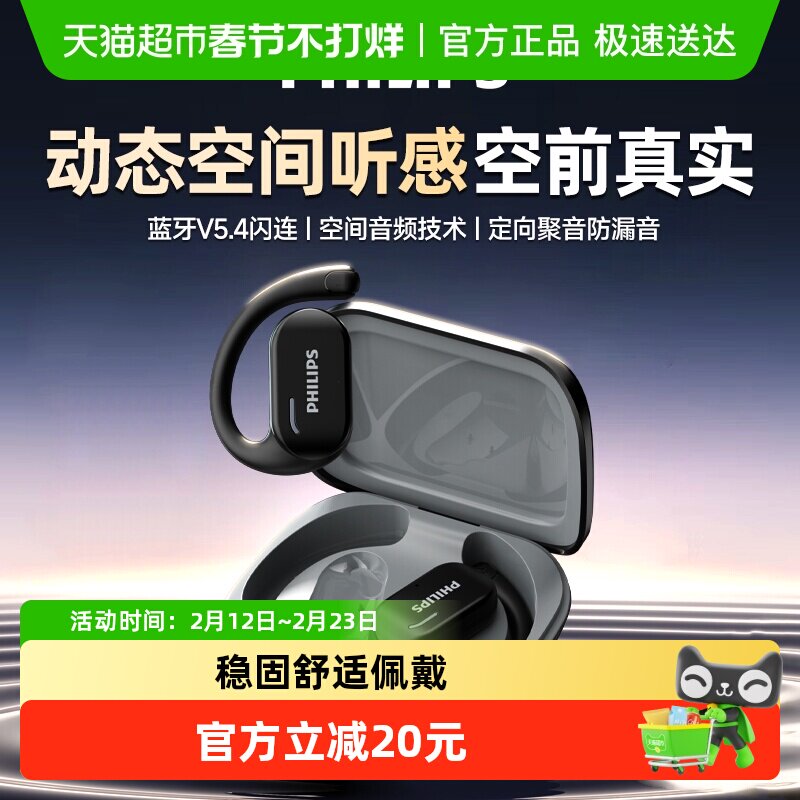 📚 飞利浦TAT1769蓝牙耳机无线挂耳式气骨传导2025新款不入耳开放式