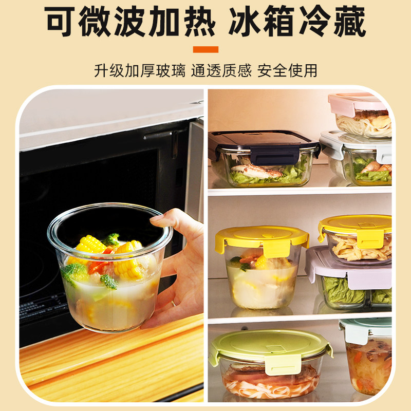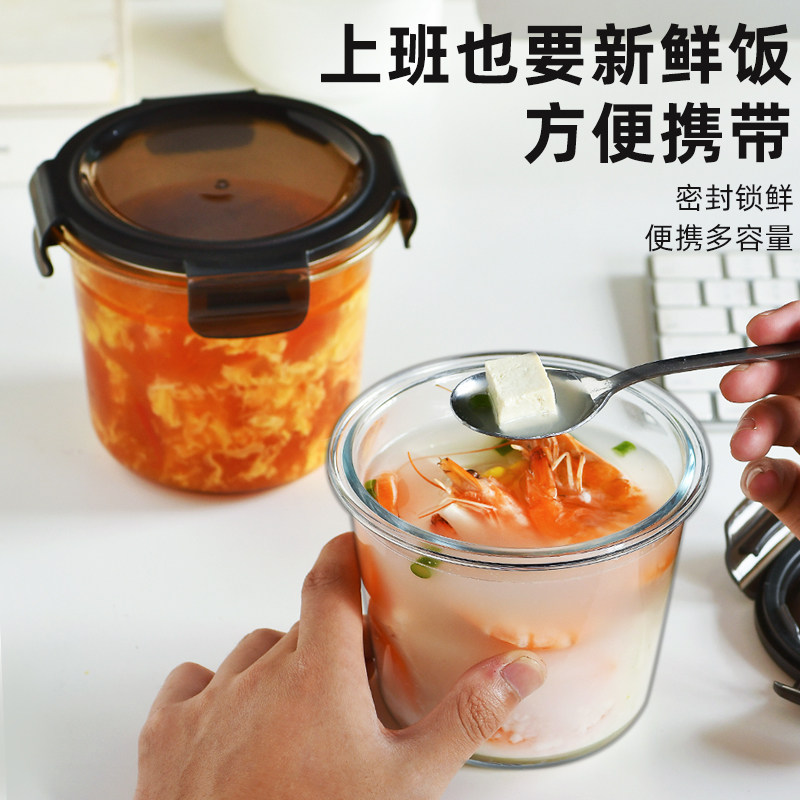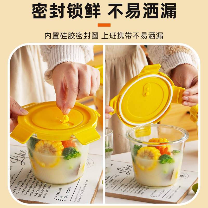 📚 玻璃汤碗圆形饭盒可微波炉加热碗带盖喝汤杯学生上班族便携保鲜盒