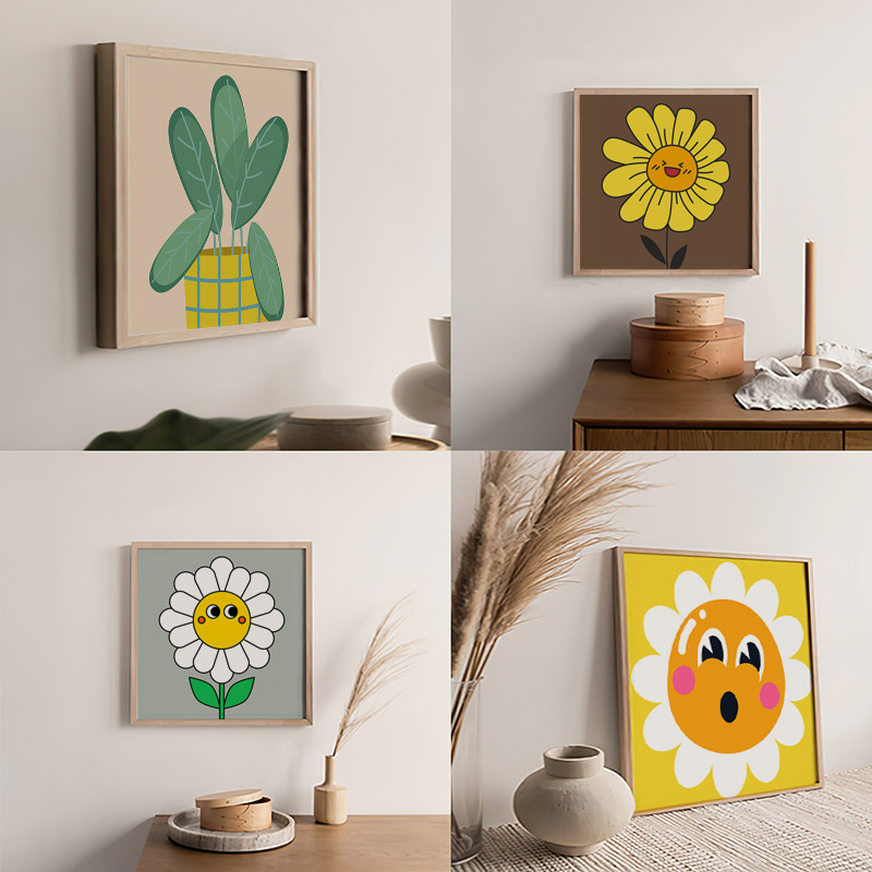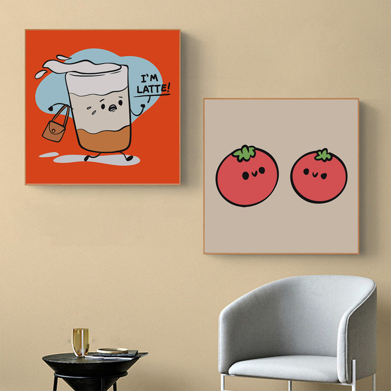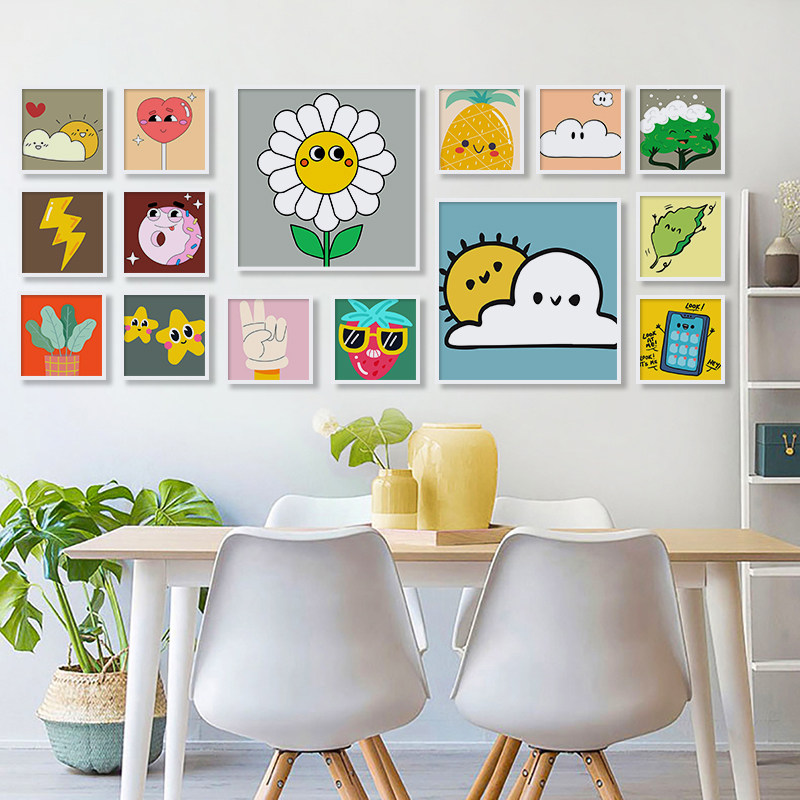 📚 可爱卡通奶油风多巴胺色系装饰画画芯餐厅房间布置摆台内芯正方形