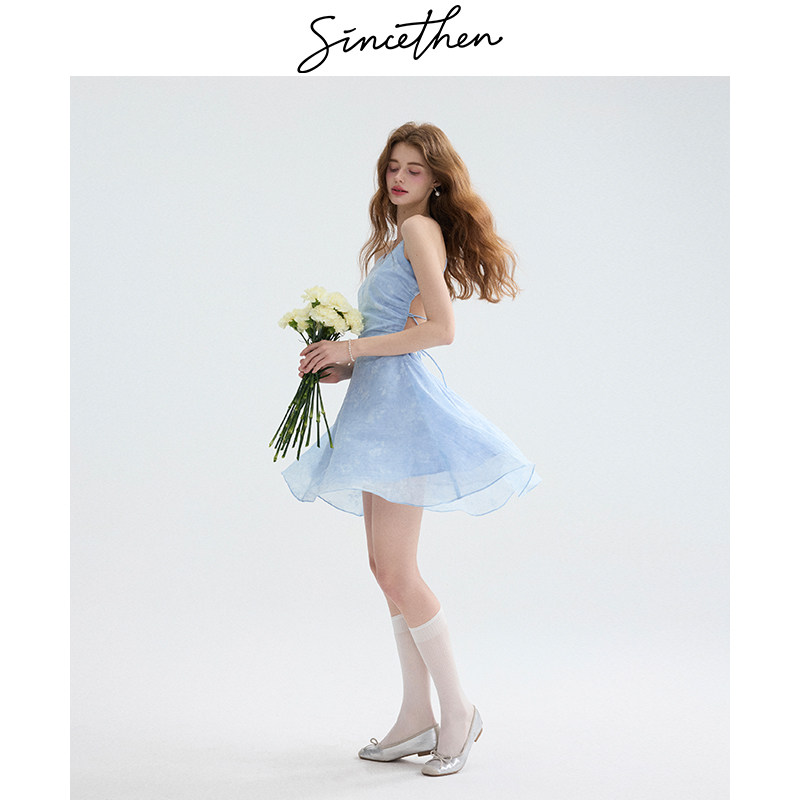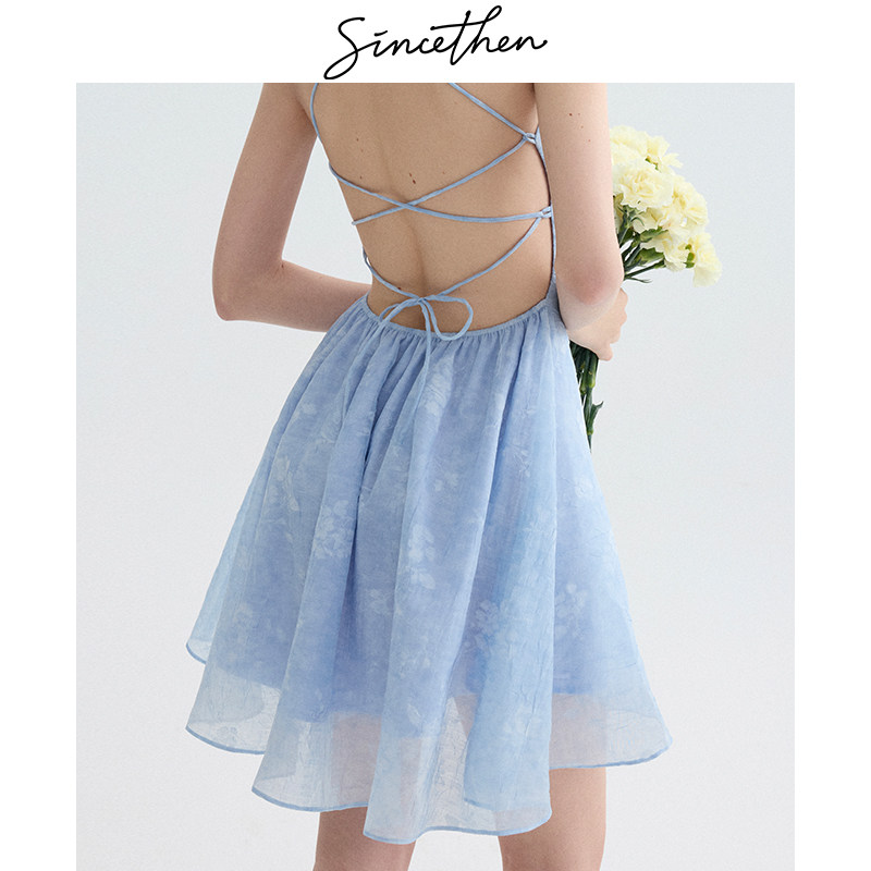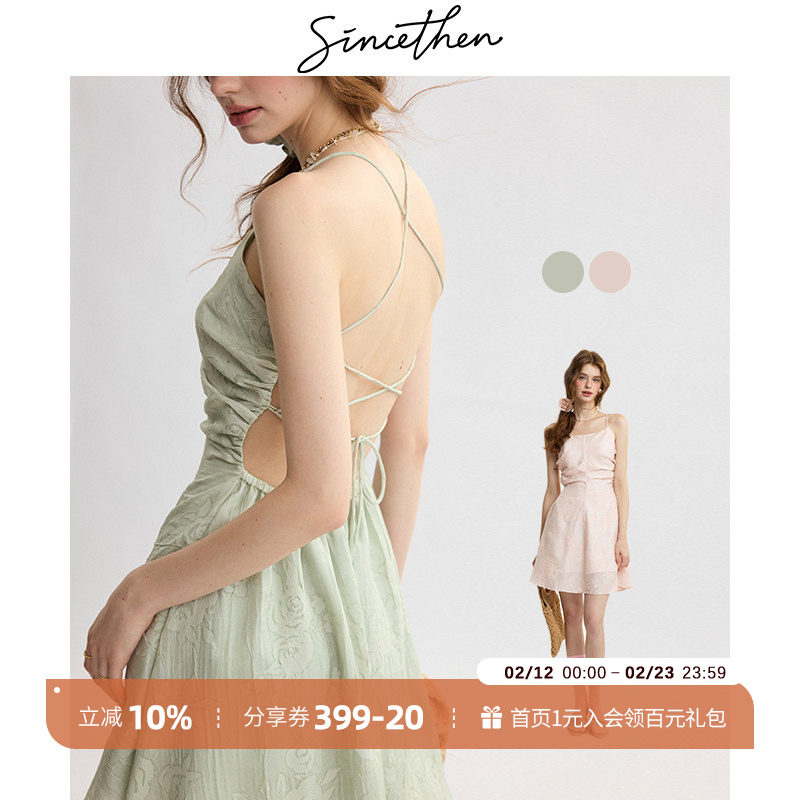 📚 sincethen粉色吊带裙海边度假连衣裙小个子短裙露背裙子海岛穿搭