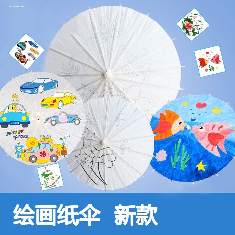 📚 儿童幼儿园手工油纸伞diy材料包制作手绘画空白雨伞填色涂鸦纸伞
