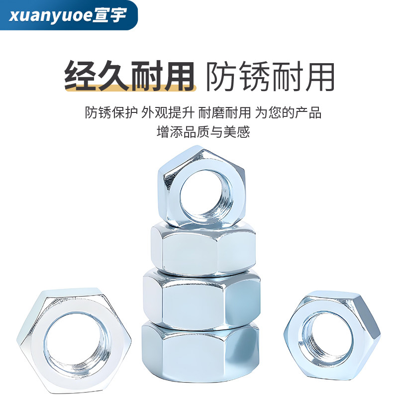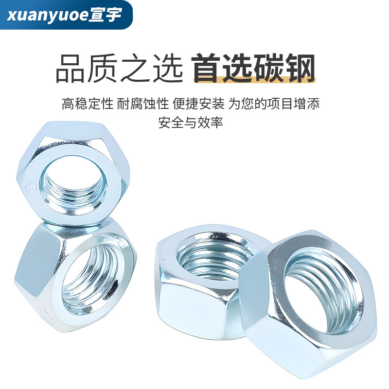 📚 4级/8级镀锌六角螺母GB6170蓝白锌加厚锁紧螺帽M5M6M8M10M12-M42
