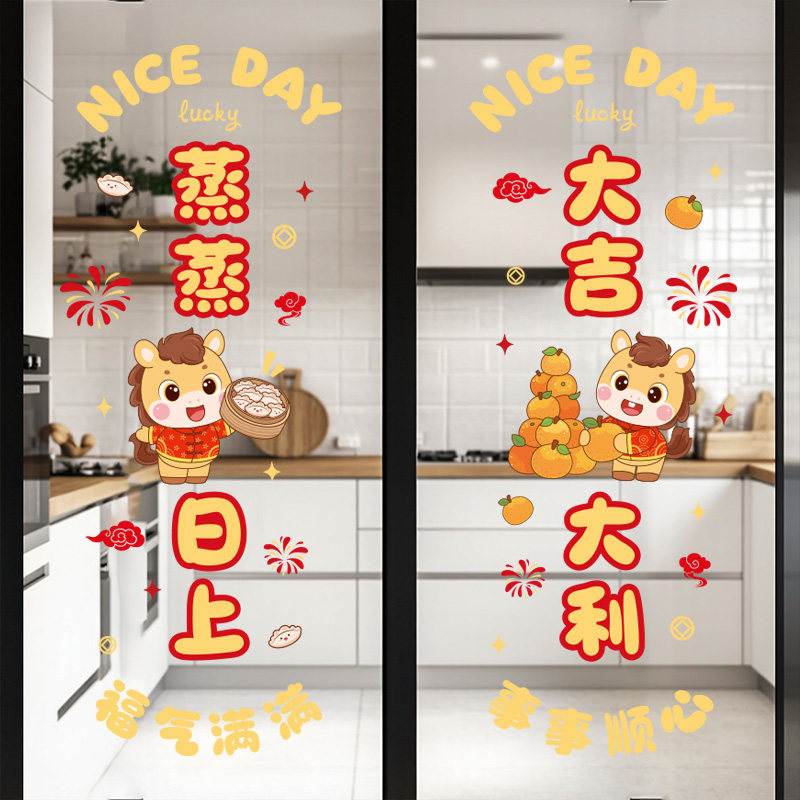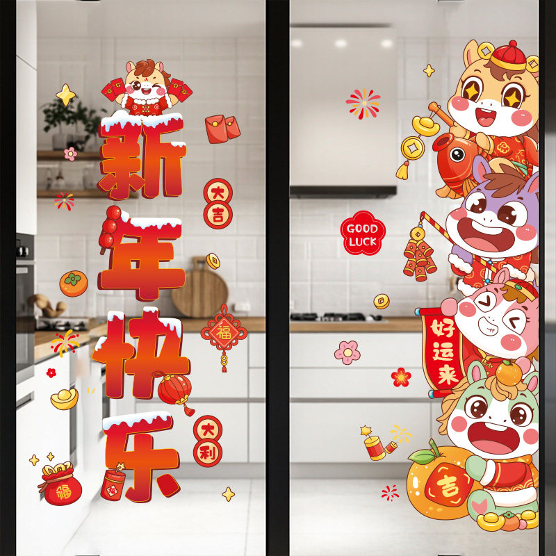 📚 新年装饰马年玻璃门贴纸静电贴2026新款窗花过年春节厨房家里装饰