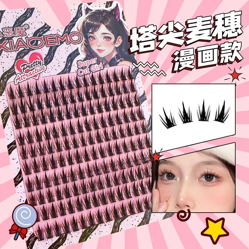 📚 小恶魔塔尖麦穗睫毛假睫毛懒人三部曲分段睫毛漫画款浓密款大容量