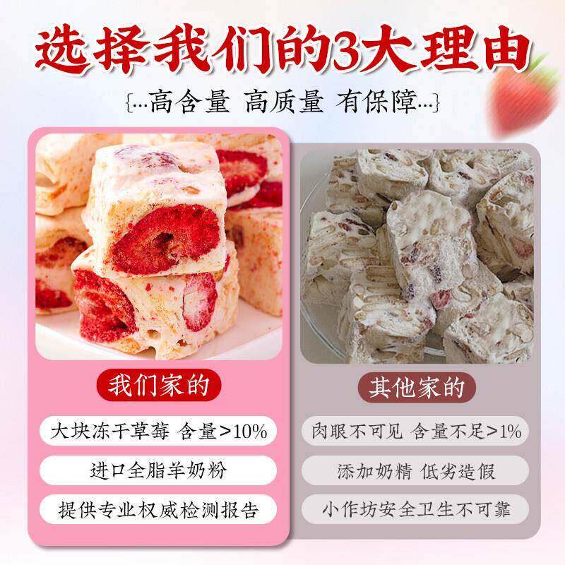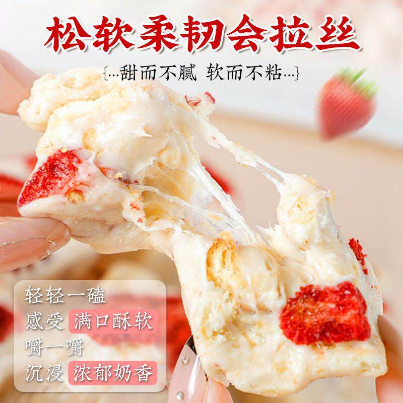 📚 手工长条草莓羊奶芙绵软拉丝旗舰店雪花酥糕点心网红吃货小零食品