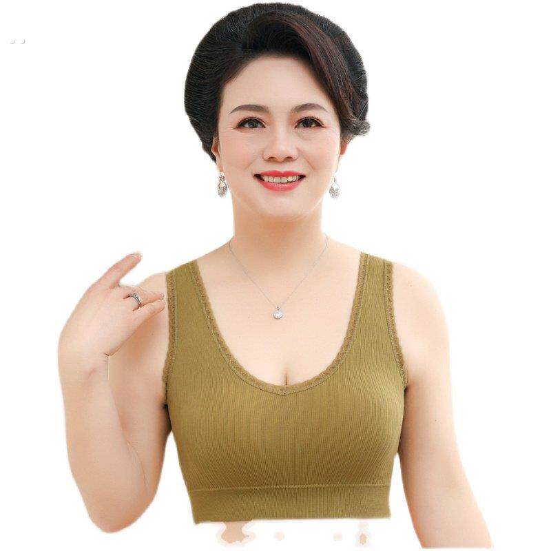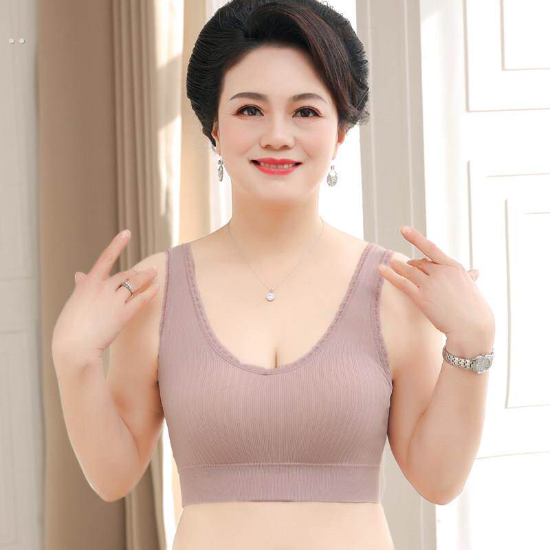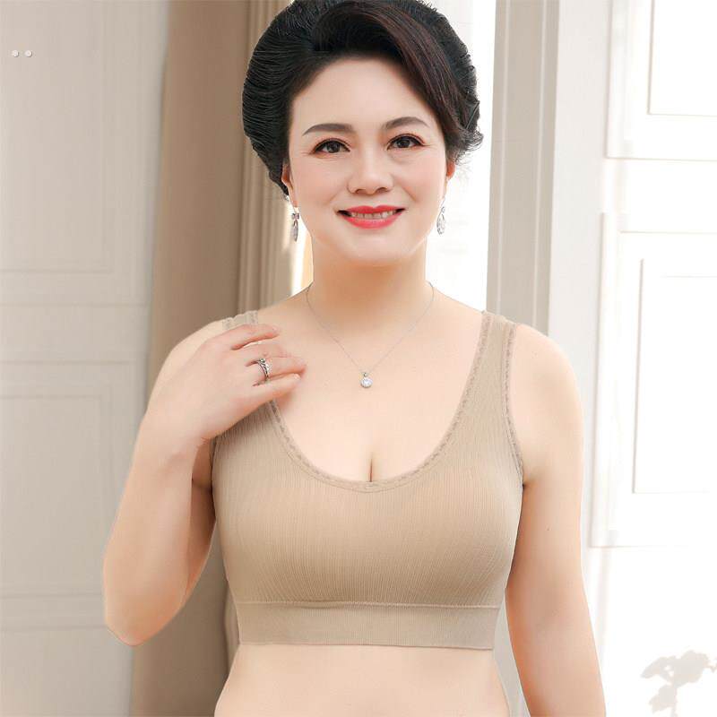 📚 老年背心式无线贴身运动推高全罩杯胸罩妈妈蕾丝美丽的背部薄胸罩