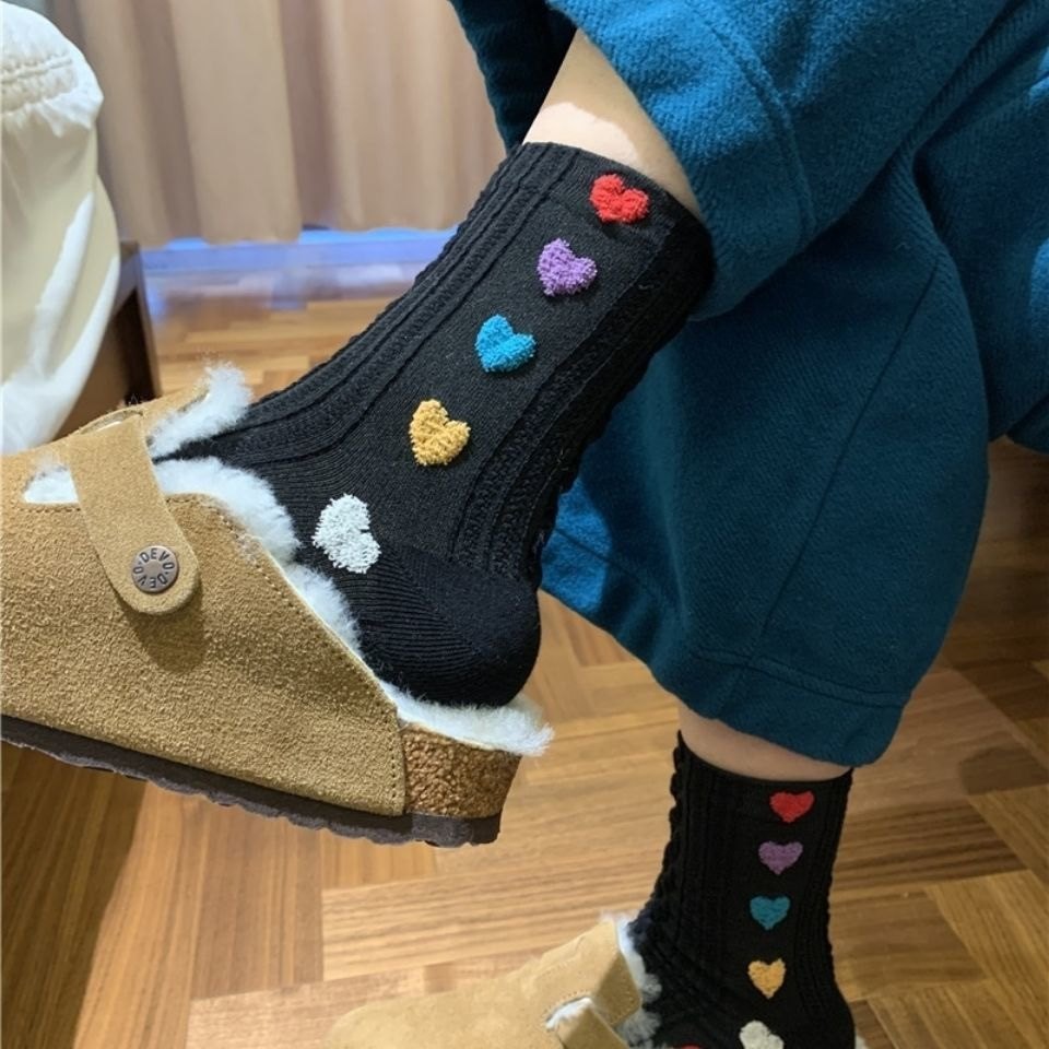 📚 满屏爱心~好喜欢!东大门袜子女彩色多巴胺四季款学院风中筒袜