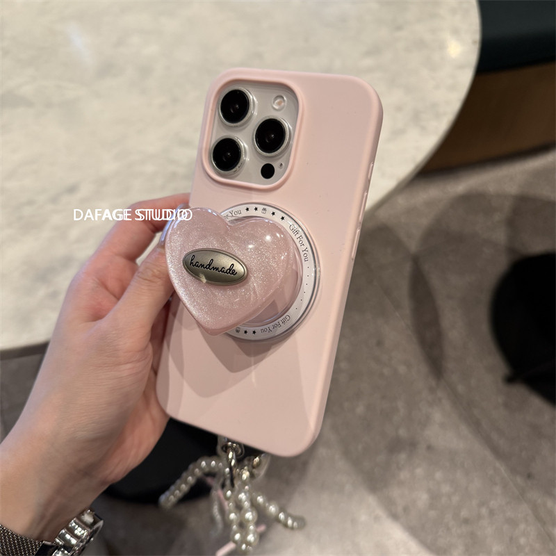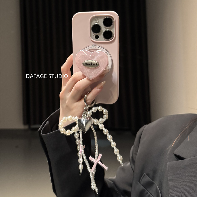 📚 ins粉色爱心磁吸支架珍珠链条适用苹果14Promax手机壳16女13pro苹果15promax韩17pro