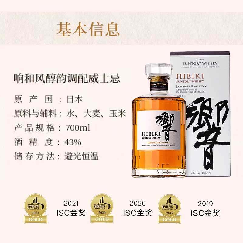 📚 【自营】日本进口三得利响和风醇韵威士忌700ml日威调配洋酒正品