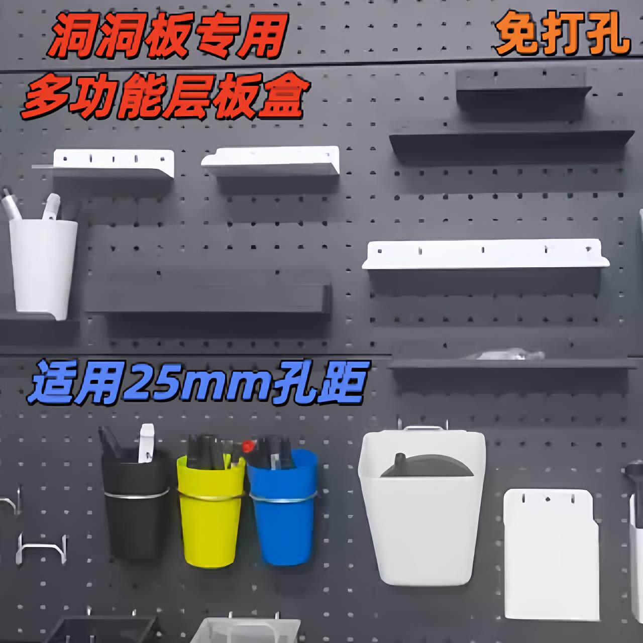 📚 洞洞板配件25mm孔距置物板隔板挂钩收纳置物盒铁艺金属圆孔免打孔