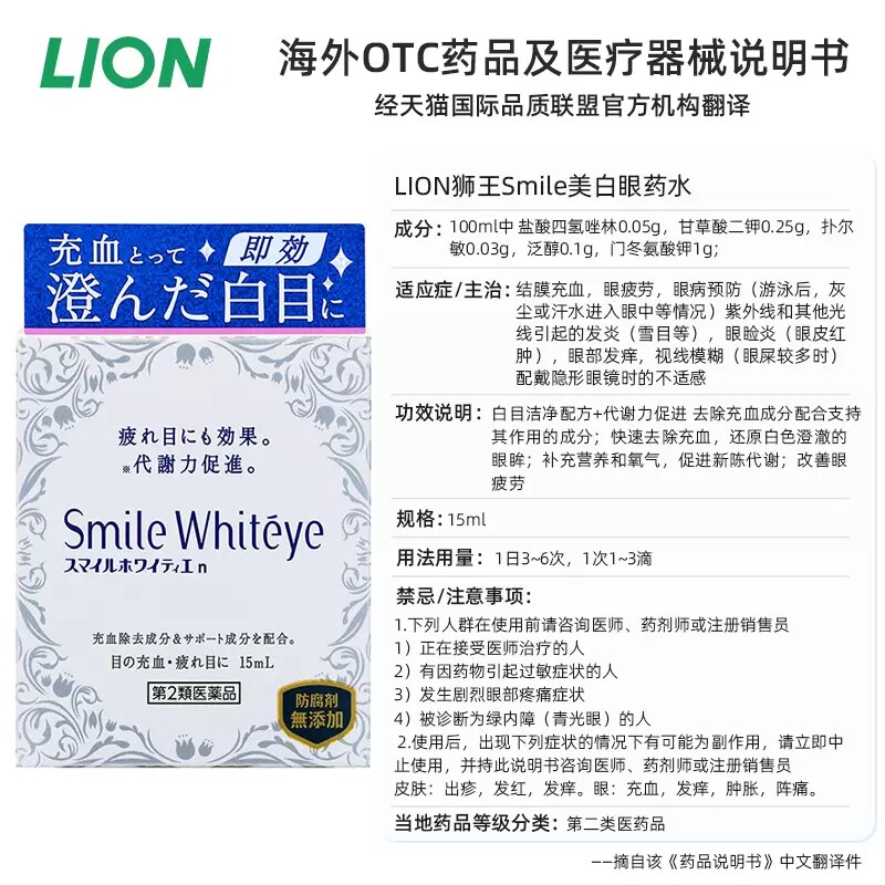 📚 【自营】日本进口狮王美白眼球清澈眼白促进代谢裸眼隐形眼药水