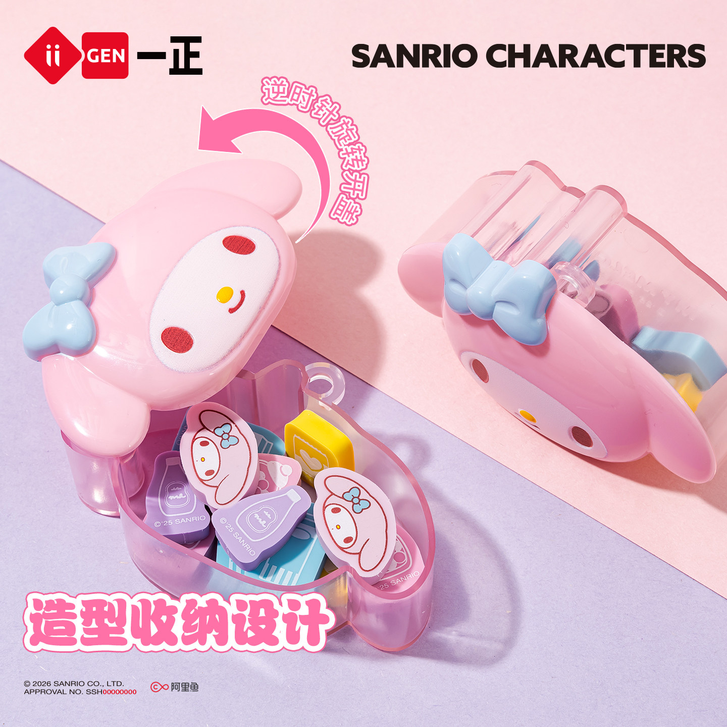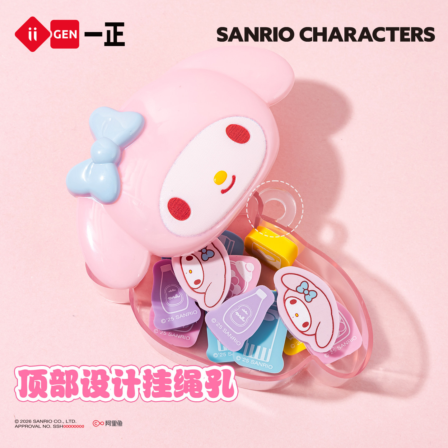 📚 iiGEN一正三丽鸥HelloKitty造型盒装橡皮擦儿童学生礼物 美乐蒂库洛米可爱mini小巧橡皮擦可挂绳防丢学生橡皮