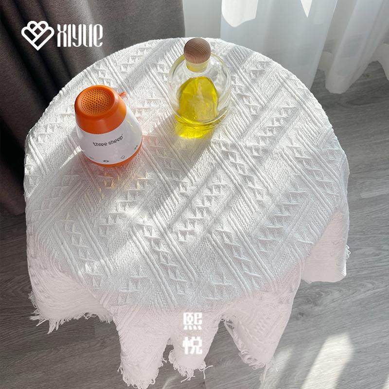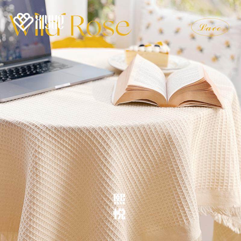 📚 ins奶油风法式流苏长方形茶几圆桌布餐桌布床头柜茶台装饰盖布
