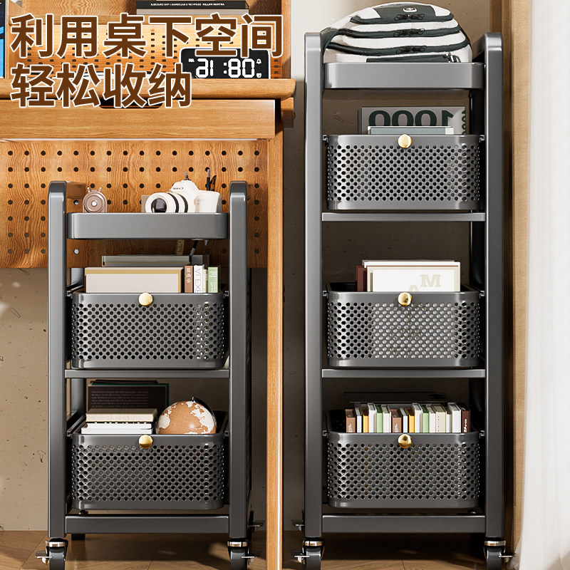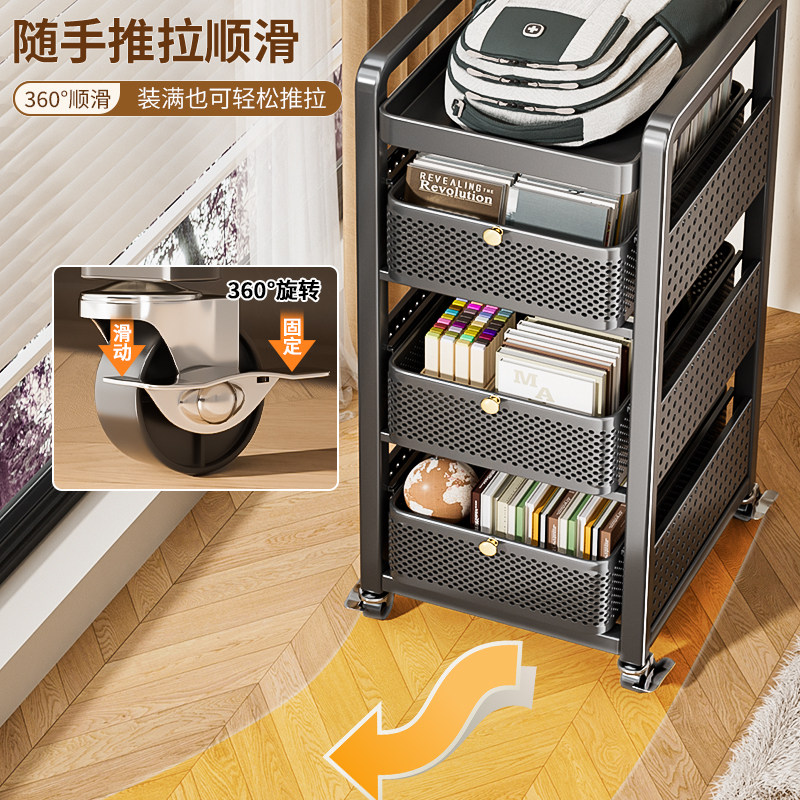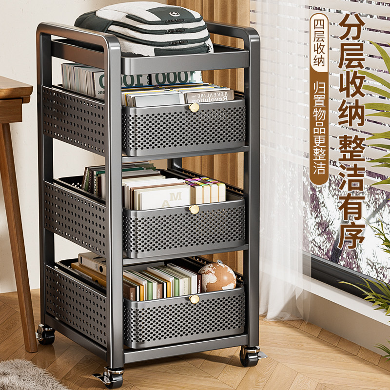 📚 新款书包置物架带滑轮可移动小推车书本收纳柜书桌下多层放置神器
