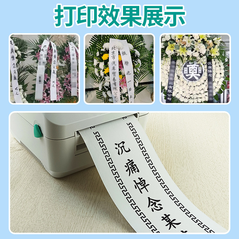 📚 热敏挽联纸打印机殡仪花圈条幅专用飘带蓝牙打印布标白事对联可连手机带切刀自动裁切热敏热转印碳带条幅机