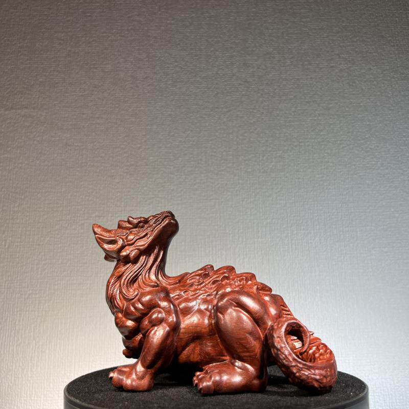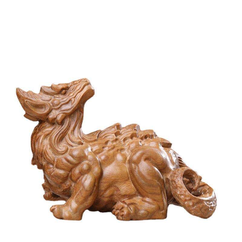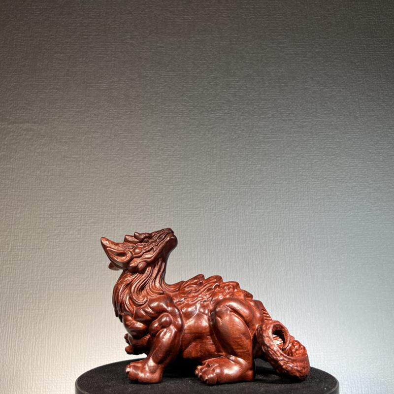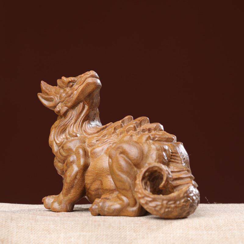 📚 紫檀绿檀木雕白泽祥瑞神兽摆件手把件供奉车内中控家居装饰品